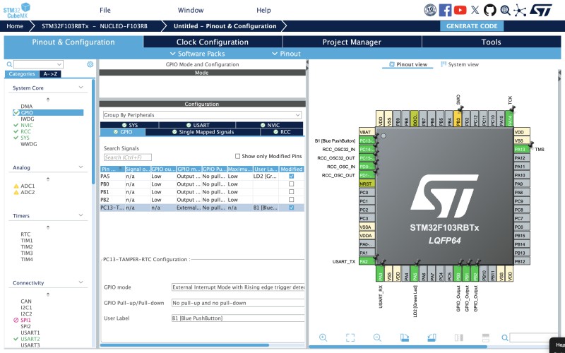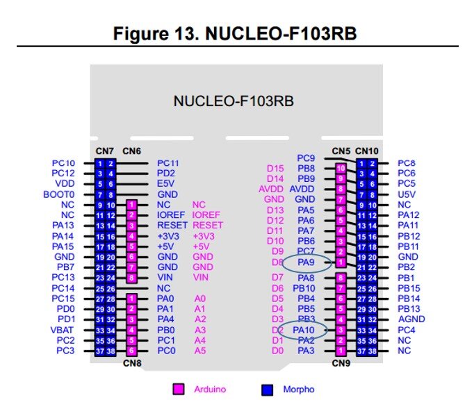 Nucleo F103RB is a development board by STMicroelectronics based on the STM32F103RB microcontroller (ARM Cortex-M3). It includes: