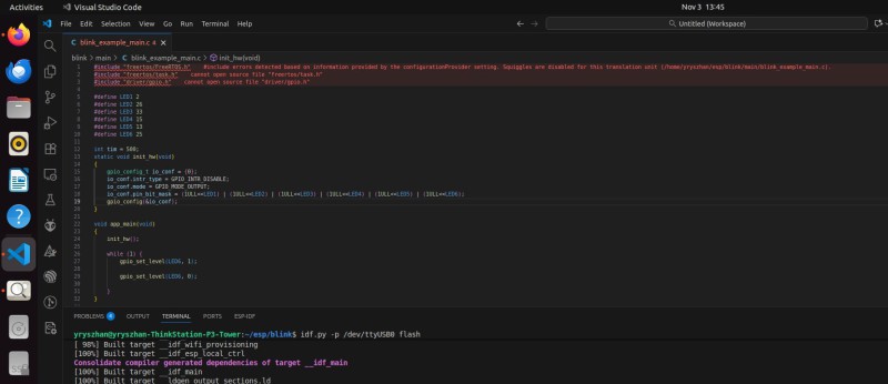 At the beginning of the program, I called set_all(0) to ensure the LED started in the OFF state. Inside the infinite loop, the code tries to set the LED HIGH and LOW by calling gpio_set_level().