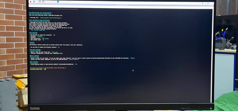In this photo, we started the installation of Node-RED on our Raspberry Pi 4. We executed the installation script in the terminal, which downloaded all required packages, dependencies, and modules. We monitored the entire process to make sure the system was being installed correctly.