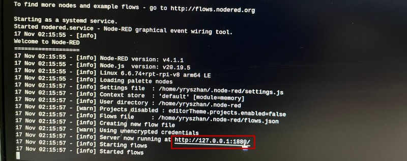 This confirmed that Node-RED was successfully deployed on our Raspberry Pi. Now the interface could be opened from any browser inside our network.
