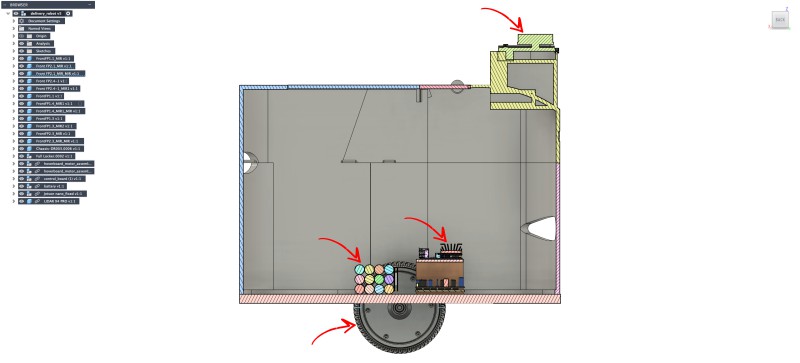 All components (battery, hoverboard board, ESP32 board, sensors, buck converter) have dedicated positions inside the 3D-printed chassis. I used screws and brackets to mount each module firmly to reduce vibration.