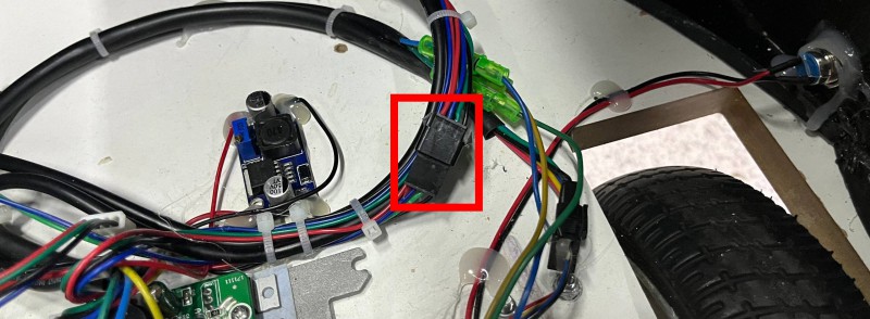 I used my custom ESP32 control board as the main controller. The board is powered through a 5V buck converter connected to the hoverboard battery (15V). UART wires from the ESP32 go directly to the hoverboard motor driver board. All connections use JST headers, heat-shrink protection, and organized cable routing inside the robot.