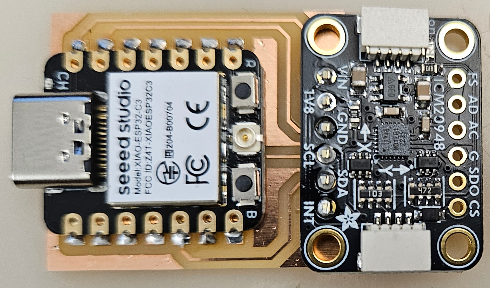 inputs ports comparator A/D I2C switch button slide debouncing hello.button-blink.C3 board components traces interior hello.button-blink.C3.ino hello.button-blink.C3.py video hello.button.D11C board components traces traces+exterior interior hello.button.USB.ino hello.button.D11C.ino hello.button.t412 board components traces traces+exterior interior hello.button.serial.ino hello.button.t412.ino magnetic field Hall effect hello.mag.45 board components traces traces+exterior interior hello.mag.45.c makefile hello.mag.45.py video hello.mag.t412 board components traces traces+exterior interior hello.mag.serial.ino hello.mag.t412.ino hello.mag.D11C board components traces traces+exterior interior hello.mag.USB.ino hello.mag.D11C.ino vector applications simulation hello.TLE493D.t412 board components traces traces+exterior interior hello.TLE493D.t412.wire.ino softwire.ino nowire.ino .c .make .py video potentiometer hello.DRV8428-D11C-NEMA17 step response resistance, capacitance, inductance, position, pressure, tilt, acceleration, humidity, proximity, touch, multitouch, force, bending, ... averaging, filtering, shielding self-capacitance, loading, 1 pin hardware QTouch FreeTouch hello.touch.D21 board components traces interior hello.touch.D21.ino video ESP32 IDF Arduino MicroPython hello.touch.S3 board components top interior hello.touch.S3.py video resistor exernal hello.steptime1.RP2040 board components traces interior hello.steptime1.RP2040.py video internal hello.steptime.RP2040.py components video remote processor hello.load.RP2040.t412 board components traces holes interior hello.load.RP2040.py hello.load.t412.ino video caliper LVDT CVDT video mutual capacitance, transmit-receive, 2 pins resistors hello.txrx2.RP2040 board components traces holes interior hello.txrx2.RP2040.ino video hello.txrx.t1624 board components traces traces+exterior interior hello.txrx.t1624.ino hello.txrx.t1624.py video remote op-amp hello.txrx.RP2040.op-amp board components traces holes interior hello.txrx.RP2040.op-amp.ino video dielectric spectroscopy application theory measurement VNA temperature bridges NTC RTD thermistors hello.temp.45 board components traces traces+exterior interior hello.temp.45.c makefile hello.temp.45.py video IR thermocouples light LED reverse bias current IR visible phototransistor hello.light.45 board components traces traces+exterior interior hello.light.45.c makefile hello.light.45.py video synchronous detection spread spectrum hello.reflect.45 board components traces traces+exterior interior hello.reflect.45.c makefile hello.reflect.45.py video color RGB hello.VEML6040.t412 board components traces traces+exterior interior hello.VEML6040.ino hello.VEML6040.py video gesture motion Doppler radar hello.RCWL-0516 board components traces traces+exterior interior hello.RCWL-0516.c makefile hello.RCWL-0516.py video pyroelectric hello.HC-SR501 board components traces traces+exterior interior hello.HC-SR501.c makefile hello.HC-SR501.py video distance optical VL53L0X library hello.VL53L0X.D11C board components reflow traces traces+exterior interior hello.VL53L0X.D11C.ino hello.VL53L0X.D11C.py video VL53L1X module modules library hello.VL53L1X.t1614 board components traces traces+exterior interior hello.VL53L1X.ino hello.VL53L1X.py video VL53L5CX module sonar hello.HC-SR04 board components traces traces+exterior interior hello.HC-SR04.c makefile hello.HC-SR04.py video LIDAR real-time clock (RTC) PCF8523 module hello.PCF8523.RP2040 board components top holes interior hello.PCF8523.ino, video location, atomic clock time GNSS NMEA NEO-6 GT-U7 module hello.GPS.t1614 board components traces traces+exterior interior hello.GPS.t1614.ino video acceleration, rotation, orientation, IMU 3 axis accelerometer ADXL343 hello.ADXL343 board components reflow traces traces+exterior interior hello.ADXL343.c makefile calibration hello.ADXL343.py video 6 axis accelerometer+gyroscope MPU-6050 module hello.MPU-6050.RP2040 board components top holes interior hello.MPU-6050. ino py video LSM6DSV16X hello.LSM6DSV16X.RP2040. pro sch pcb board components traces interior library video hello.LSM6DSV16X.fusion. ino py video 9 axis accelerometer+gyroscope+magnetometer BNO085 module BNO086 RVC serial hello.4754.RP2040 board components traces holes interior hello.4754.RP2040. py html video SH2 library I2C MPU-9250 ICM-20948 module pro sch pcb board components traces holes interior library video sound MEMS digital I2S Arduino MicroPython bottom port module hello.ICS-43434.RP2040 board components traces holes interior hello.ICS-43434.RP2040.ino hello.ICS-43434.RP2040.py video top port hello.CMM-4030D-261-I2S-TR.t1614 board components traces interior hello.CMM-4030D-261-I2S-TR.ino hello.CMM-4030D-261-I2S-TR.py video analog hello.SPU0414HR5H board components traces traces+exterior interior hello.SPU0414HR5H.c makefile hello.SPU0414HR5H.py video electret op-amp hello.mic.45 board components traces traces+exterior interior hello.mic.45.c makefile hello.mic.45.py video speech vibration piezo force capacitor resistor force sensing resistor strain gauge load cell angle pressure pulse air pollution gases image ESP32 ESP32S3 XIAO Sense module camera hello.ESP32-Sense.ino video ESP32-CAM hello.ESP32-CAM board components traces traces+exterior holes interior camera library video hello.ESP32-CAM.ino video AI module webcams boards libraries OpenCV OpenCV.js SimpleCV libuvc guvcview WebRTC video.html video browser security Adrian group assignment: • probe an input device's analog levels and digital signals individual assignment: • measure something: add a sensor to a microcontroller board that you have designed and read it