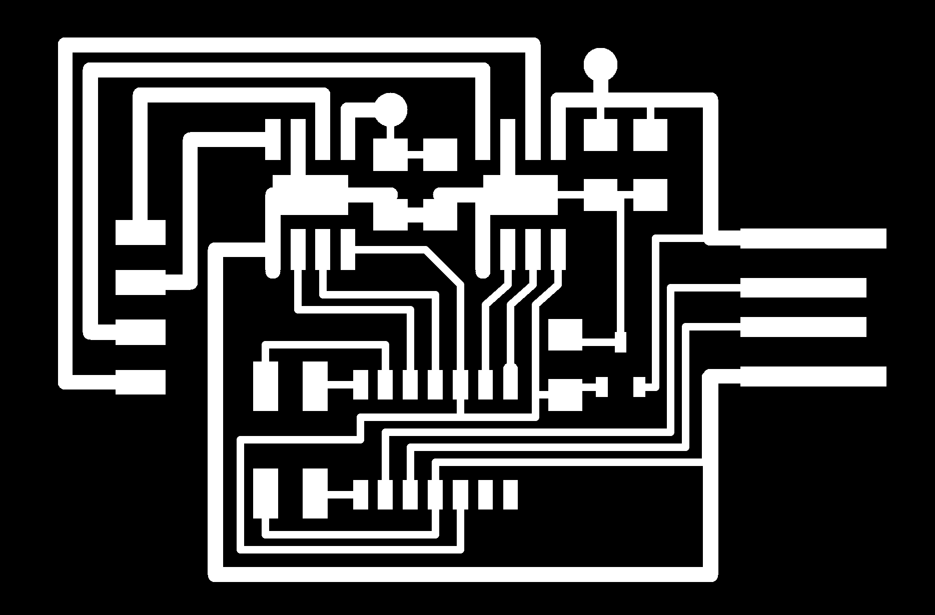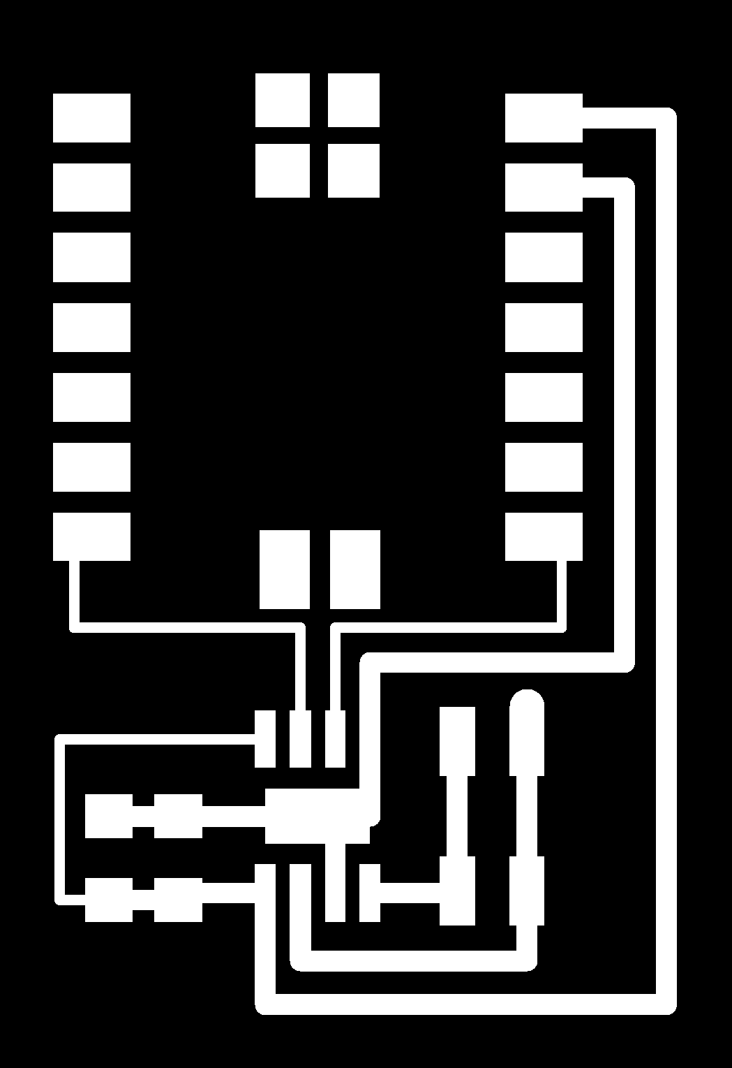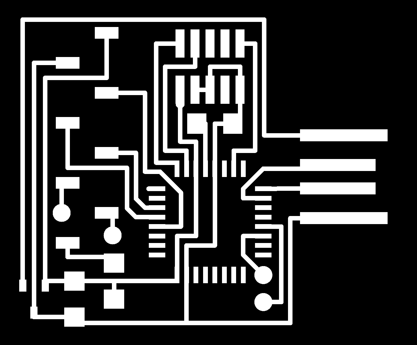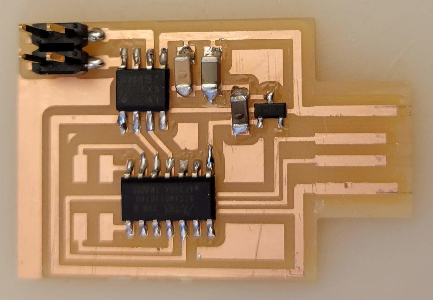 electrical safety ~1 mA: OK ~10 mA: shock, contraction ~100 mA: fibrillation body: M ohm external, k ohm internal dielectric breakdown: ~kV/mm supply capacitors inductive flyback polarity protection diode, MOSFET level shift MOSFET connector polarization, orientation circuit protection power wire gauge USB charger hub battery module meter power supply bench switching, linear, regulated supercapacitor LiPo battery charge controller storage wireless current measurement in-line meter supply regulation sense resistor magnetic field inductance LED current limiting hello.button-blink.C3 board components traces interior hello.button-blink.C3.ino hello.button-blink.C3.py video PWM hello.fade.C3.py video Charlieplexing hello.array.44 board components traces traces+exterior interior C makefile video hello.array.44.2 board components bottom vias top top+exterior interior C makefile video RGB LED pixels lights wires NeoPixel/WS2812B/SK6812 hello.WS2812B board components top interior hello.WS2812B.RP2040.py video Arduino Micropython library 3 in 1 hello.RGB.45 board components traces traces+exterior interior C makefile video LEDs diode drop, series-parallel MOSFET N, P, N floating gates, gate resistors dissipation, Rds, switching BJT, BiCMOS, IGBT hello.LEDs.t412 board components traces traces+exterior interior hello.LEDs.t412.ino video thermal runaway eye safety displays LCD HD44780 library hello.LCD.44 board components traces traces+exterior interior C makefile video I2C PCF8574 library hello.I2C.t1614 hello.LCD.I2C.ino video OLED SSD1306 hello.SSD1306.RP2040 board components top holes interior hello.SSD1306.RP2040.py ssd1306.py video library scripts hello.SSD1306.45 board components traces traces+exterior interior C makefile video TFT ILI9341 library hello.ILI9341.SW.D21E board components traces traces+exterior interior video hello.ILI9341.HW.D21E board components top top+exterior bottom holes interior video ST7735 video E Ink modules video RS170, NTSC, PAL, SECAM, VGA 75 ohm impedance hello.video.44 board components traces traces+exterior interior C makefile video SPI TVout thinner client color DC motor H-bridge TB67H451AFNG,EL TB67H453FNG(O,EL) hello.TB67H451.RP2040 board components top interior hello.TB67H451.RP2040.ino hello.TB67H451.RP2040.py boot.py video hello.H-bridge.D11C board components traces traces+exterior interior hello.H-bridge.D11C.ino video A4950 hello.H-bridge.44 board components traces traces+exterior interior C makefile video Dual H-bridge DRV8847 torque, power, efficiency, gearing vibration heat speaker MP3 module library hello.DFR0299.RP2040 pro sch pcb board components top holes interior hello.DFR0299.ino video I2S MAX98357A library module hello.MAX98357A.RP2040 board components top holes interior hello.MAX98357A.RP2040.ino video PWM class D, library hello.TB67H451.RP2040.audio.ino hello.TB67H451.RP2040.audio.py boot.py video hello.TB67H451.RP2040.wave.py sample.py hello.py convert_byterray.py video hello.TB67H451.RP2040.wave.ino sample.ino sample.main.ino convert.py video hello.speaker.D11C board components traces traces+exterior interior hello.speaker.D11C.ino hello.speaker-registers.D11C.ino video solenoid servo motor 50 Hz ~1-2 ms PWM (dis)continuous rotation ATtiny412 hello.servo.t412 board components traces traces+exterior interior hello.servo.t412.ino hello.servo-registers.t412.ino video ATSAMD11C hello.servo-D11C board components traces traces+exterior interior hello.servo-registers.D11C.ino video ATtiny44 hello.servo.44 board components traces traces+exterior interior ZLDO1117 hello.servo.44.1 board components traces traces+exterior interior LM2940 C (hardware PWM) makefile C (two-channel, software PWM) makefile video brushless DC motor (BLDC) efficiency, density, reliability, noise inrunner, outrunner, pancake, fan, gimbal Kv (RPM/V) phases/rotation (6 typical) drive waveform open-loop, closed-loop control back EMF (BEMF) sensing ~1 (fan), 10 (drone), 100 (skateboard), 1000 (car) A,$ triple half-bridge A4949 hello.A4949.RP2040 board components top interior hello.A4949.RP2040.py video electronic speed controller (ESC) hello.ESC.44 board components traces traces+exterior interior C makefile video firmware servo PWM power input, output initialization, calibration stepper motor types wire identification step size (1.8 degrees typical) full, half, microstepping current, duration field oriented control step and direction DRV8428 hello.DRV8428-D11C board components traces traces+exterior holes interior hello.DRV8428-D11C.ino video hello.DRV8428-D11C-NEMA17 board components traces traces+exterior holes interior code video H-bridge DRV8251ADDAR hello.DRV8251A.RP2040 pro sch pcb board components traces interior hello.DRV8251A.RP2040.stepper.ino video TB67H451AFNG,EL hello.stepper.bipolar.D11C board components top top+exterior bottom holes interior hello.stepper.bipolar.D11C.ino video driver electro-permanent electrostatic motor control Allegro TI Trinamic Pololu motion control solid state relay AC vs DC IC hockey puck wiring voltage drop: ~V safety: switch hot side US: black (red,blue) = hot, white = neutral, green(-yellow) = ground EU: brown (black,gray) = hot, blue = neutral, green-yellow = ground switched outlet shape memory piezo polymer artificial muscle fishing line conducting thread actuator LCE soft inflatable pneumatics hydraulics Lingdong group assignment: • measure the power consumption of an output device individual assignment: • add an output device to a microcontroller board you've designed, and program it to do something