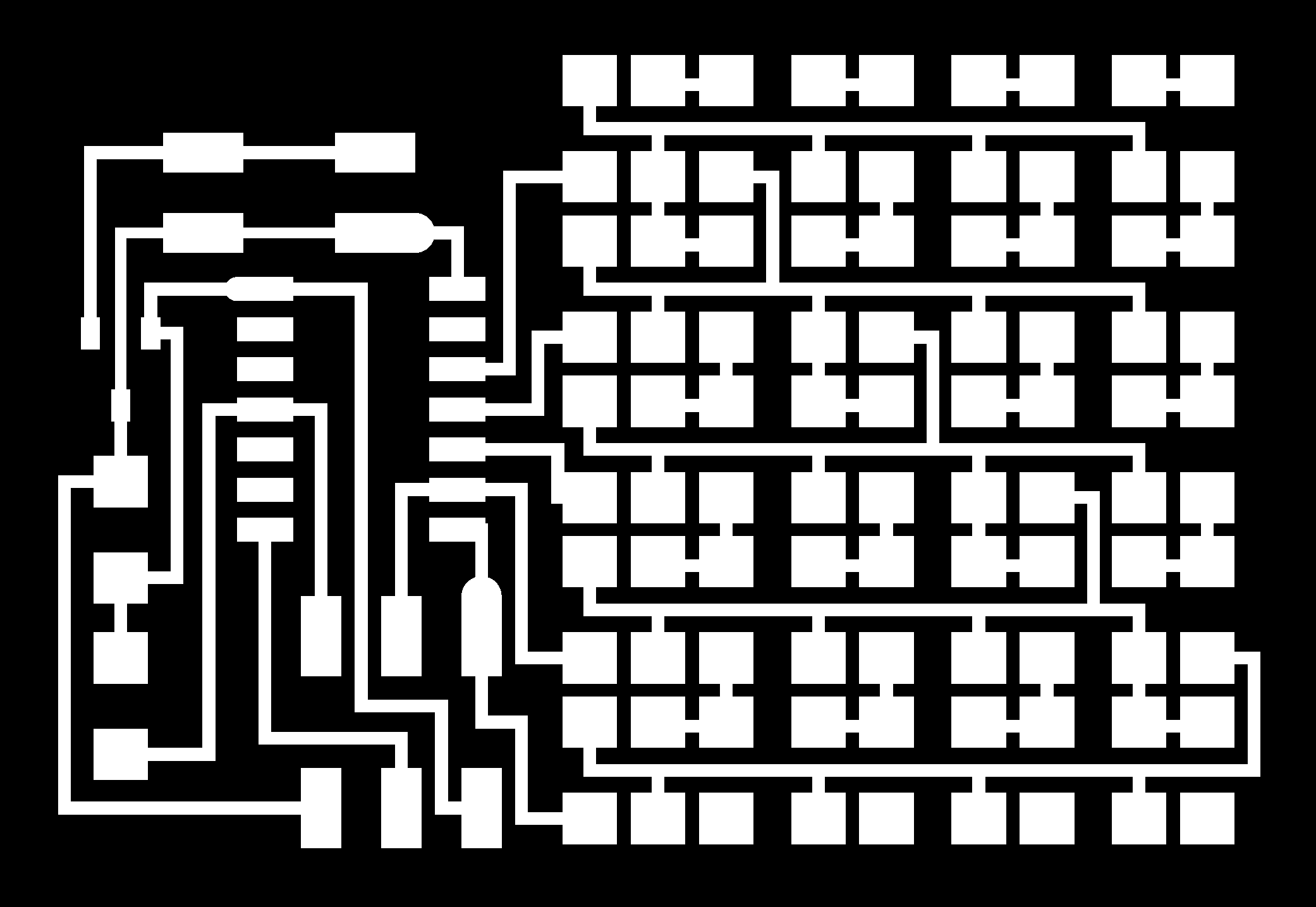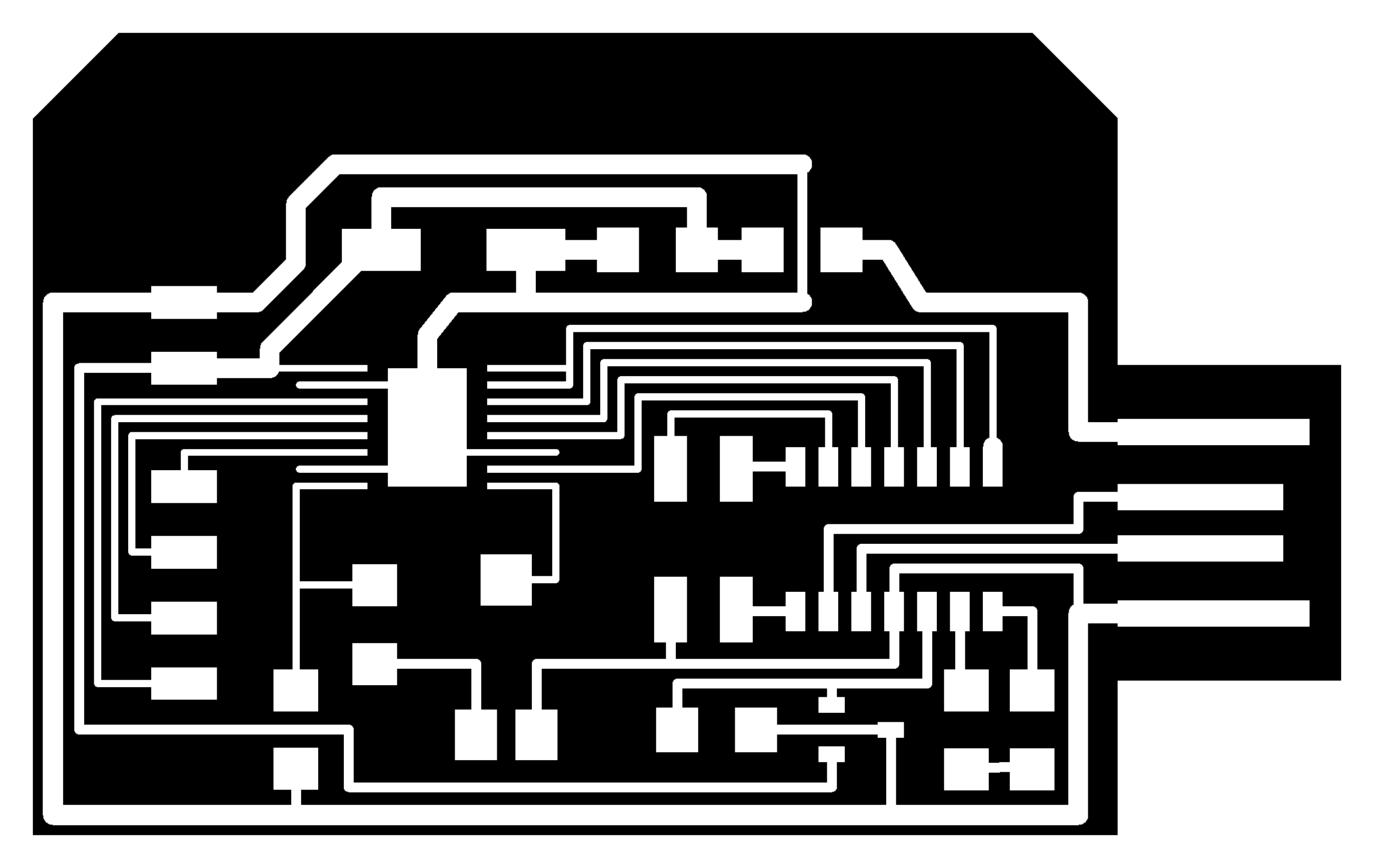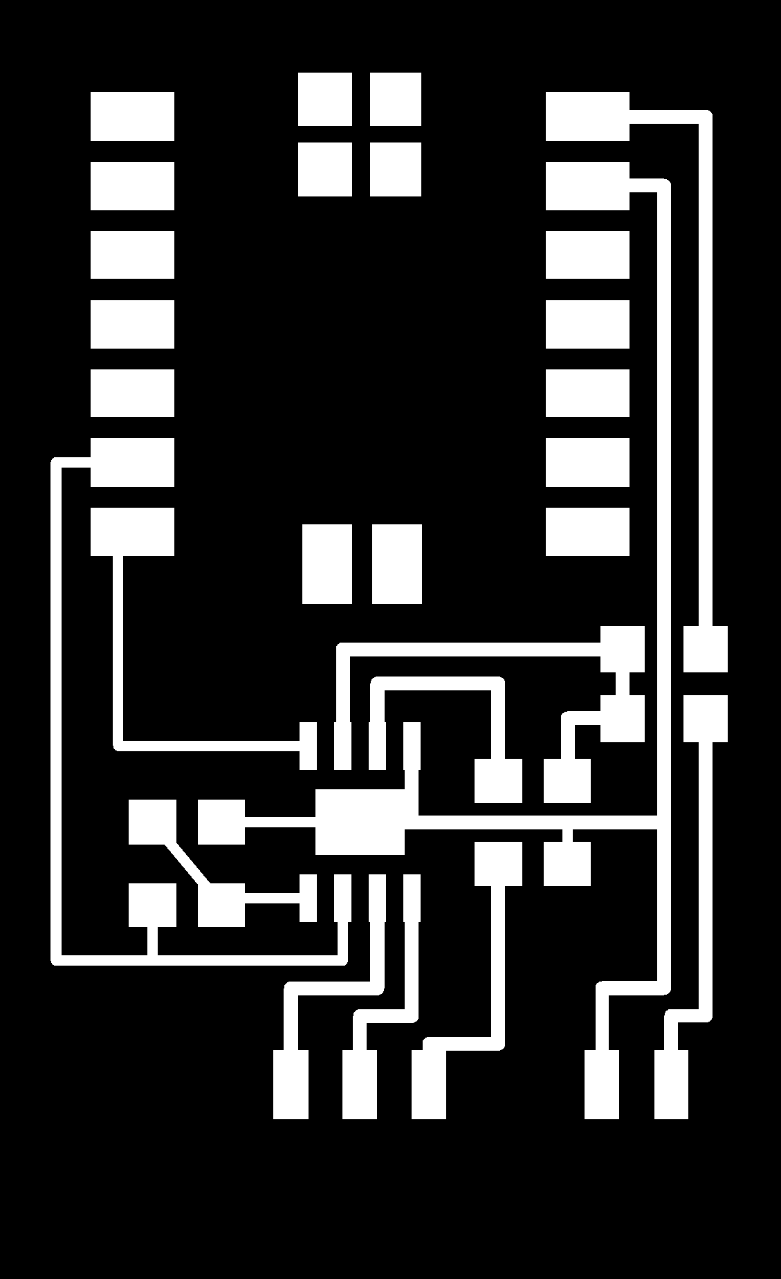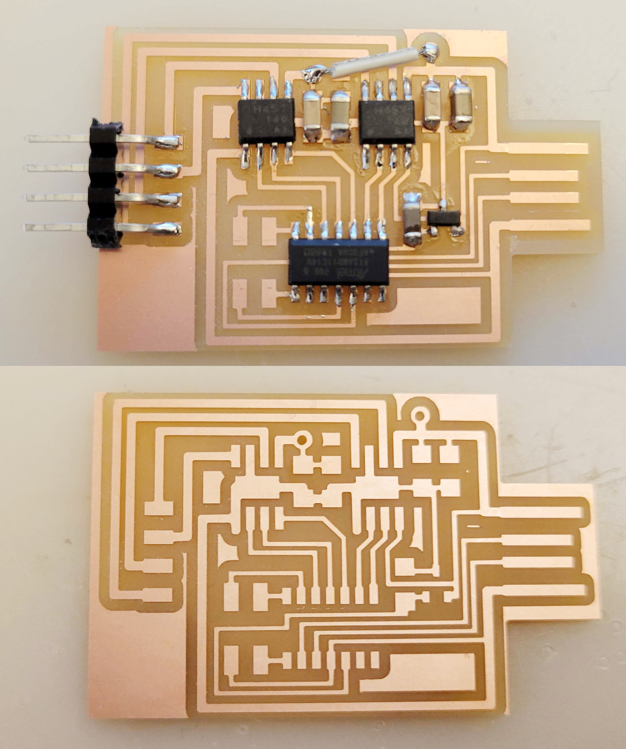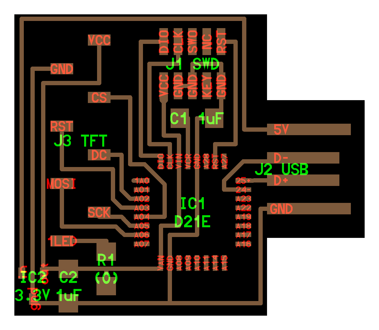 electrical safety ~1 mA: OK ~10 mA: shock, contraction ~100 mA: fibrillation body: M ohm external, k ohm internal dielectric breakdown: ~kV/mm supply capacitors inductive flyback polarity protection diode, MOSFET level shift MOSFET connector polarization, orientation circuit protection power wire gauge USB charger hub battery module meter power supply bench switching, linear, regulated supercapacitor LiPo battery charge controller storage wireless current measurement in-line meter supply regulation sense resistor magnetic field inductance LED current limiting hello.button-blink.C3 board components traces interior hello.button-blink.C3.ino hello.button-blink.C3.py video PWM hello.fade.C3.py video Charlieplexing hello.array.44 board components traces traces+exterior interior C makefile video hello.array.44.2 board components bottom vias top top+exterior interior C makefile video RGB LED pixels lights wires NeoPixel/WS2812B/SK6812 hello.WS2812B board components top interior hello.WS2812B.RP2040.py video Arduino Micropython library 3 in 1 hello.RGB.45 board components traces traces+exterior interior C makefile video LEDs diode drop, series-parallel MOSFET N, P, N floating gates, gate resistors dissipation, Rds, switching BJT, BiCMOS, IGBT hello.LEDs.t412 board components traces traces+exterior interior hello.LEDs.t412.ino video thermal runaway eye safety displays LCD HD44780 library hello.LCD.44 board components traces traces+exterior interior C makefile video I2C PCF8574 library hello.I2C.t1614 hello.LCD.I2C.ino video OLED SSD1306 hello.SSD1306.RP2040 board components top holes interior hello.SSD1306.RP2040.py ssd1306.py video library scripts hello.SSD1306.45 board components traces traces+exterior interior C makefile video TFT ILI9341 library hello.ILI9341.SW.D21E board components traces traces+exterior interior video hello.ILI9341.HW.D21E board components top top+exterior bottom holes interior video ST7735 video E Ink modules video RS170, NTSC, PAL, SECAM, VGA 75 ohm impedance hello.video.44 board components traces traces+exterior interior C makefile video SPI TVout thinner client color DC motor H-bridge TB67H451AFNG,EL TB67H453FNG(O,EL) hello.TB67H451.RP2040 board components top interior hello.TB67H451.RP2040.ino hello.TB67H451.RP2040.py boot.py video hello.H-bridge.D11C board components traces traces+exterior interior hello.H-bridge.D11C.ino video A4950 hello.H-bridge.44 board components traces traces+exterior interior C makefile video Dual H-bridge DRV8847 torque, power, efficiency, gearing vibration heat speaker MP3 module library hello.DFR0299.RP2040 pro sch pcb board components top holes interior hello.DFR0299.ino video I2S MAX98357A library module hello.MAX98357A.RP2040 board components top holes interior hello.MAX98357A.RP2040.ino video PWM class D, library hello.TB67H451.RP2040.audio.ino hello.TB67H451.RP2040.audio.py boot.py video hello.TB67H451.RP2040.wave.py sample.py hello.py convert_byterray.py video hello.TB67H451.RP2040.wave.ino sample.ino sample.main.ino convert.py video hello.speaker.D11C board components traces traces+exterior interior hello.speaker.D11C.ino hello.speaker-registers.D11C.ino video solenoid servo motor 50 Hz ~1-2 ms PWM (dis)continuous rotation ATtiny412 hello.servo.t412 board components traces traces+exterior interior hello.servo.t412.ino hello.servo-registers.t412.ino video ATSAMD11C hello.servo-D11C board components traces traces+exterior interior hello.servo-registers.D11C.ino video ATtiny44 hello.servo.44 board components traces traces+exterior interior ZLDO1117 hello.servo.44.1 board components traces traces+exterior interior LM2940 C (hardware PWM) makefile C (two-channel, software PWM) makefile video brushless DC motor (BLDC) efficiency, density, reliability, noise inrunner, outrunner, pancake, fan, gimbal Kv (RPM/V) phases/rotation (6 typical) drive waveform open-loop, closed-loop control back EMF (BEMF) sensing ~1 (fan), 10 (drone), 100 (skateboard), 1000 (car) A,$ triple half-bridge A4949 hello.A4949.RP2040 board components top interior hello.A4949.RP2040.py video electronic speed controller (ESC) hello.ESC.44 board components traces traces+exterior interior C makefile video firmware servo PWM power input, output initialization, calibration stepper motor types wire identification step size (1.8 degrees typical) full, half, microstepping current, duration field oriented control step and direction DRV8428 hello.DRV8428-D11C board components traces traces+exterior holes interior hello.DRV8428-D11C.ino video hello.DRV8428-D11C-NEMA17 board components traces traces+exterior holes interior code video H-bridge DRV8251ADDAR hello.DRV8251A.RP2040 pro sch pcb board components traces interior hello.DRV8251A.RP2040.stepper.ino video TB67H451AFNG,EL hello.stepper.bipolar.D11C board components top top+exterior bottom holes interior hello.stepper.bipolar.D11C.ino video driver electro-permanent electrostatic motor control Allegro TI Trinamic Pololu motion control solid state relay AC vs DC IC hockey puck wiring voltage drop: ~V safety: switch hot side US: black (red,blue) = hot, white = neutral, green(-yellow) = ground EU: brown (black,gray) = hot, blue = neutral, green-yellow = ground switched outlet shape memory piezo polymer artificial muscle fishing line conducting thread actuator LCE soft inflatable pneumatics hydraulics Lingdong group assignment: • measure the power consumption of an output device individual assignment: • add an output device to a microcontroller board you've designed, and program it to do something