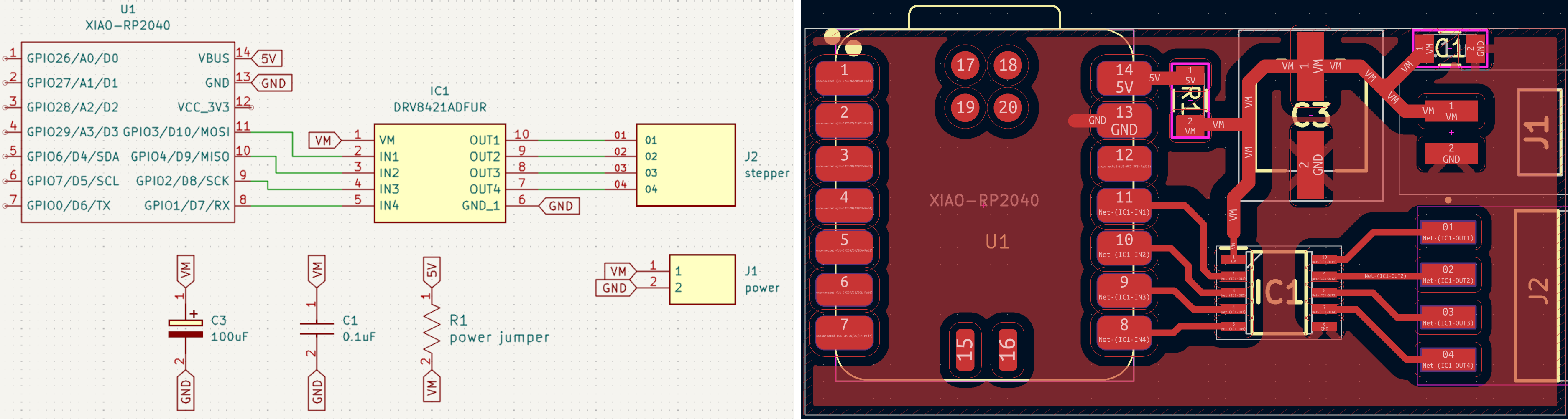 electrical safety ~1 mA: OK ~10 mA: shock, contraction ~100 mA: fibrillation body: M ohm external, k ohm internal dielectric breakdown: ~kV/mm supply capacitors inductive flyback polarity protection diode, MOSFET level shift MOSFET connector polarization, orientation circuit protection power wire gauge USB charger hub battery module meter power supply bench switching, linear, regulated supercapacitor LiPo battery charge controller storage wireless current measurement in-line meter supply regulation sense resistor magnetic field inductance LED current limiting hello.button-blink.C3 board components traces interior hello.button-blink.C3.ino hello.button-blink.C3.py video PWM hello.fade.C3.py video Charlieplexing hello.array.44 board components traces traces+exterior interior C makefile video hello.array.44.2 board components bottom vias top top+exterior interior C makefile video RGB LED pixels lights wires NeoPixel/WS2812B/SK6812 hello.WS2812B board components top interior hello.WS2812B.RP2040.py video Arduino Micropython library 3 in 1 hello.RGB.45 board components traces traces+exterior interior C makefile video LEDs diode drop, series-parallel MOSFET N, P, N floating gates, gate resistors dissipation, Rds, switching BJT, BiCMOS, IGBT hello.LEDs.t412 board components traces traces+exterior interior hello.LEDs.t412.ino video thermal runaway eye safety displays LCD HD44780 library hello.LCD.44 board components traces traces+exterior interior C makefile video I2C PCF8574 library hello.I2C.t1614 hello.LCD.I2C.ino video OLED SSD1306 hello.SSD1306.RP2040 board components top holes interior hello.SSD1306.RP2040.py ssd1306.py video library scripts hello.SSD1306.45 board components traces traces+exterior interior C makefile video TFT ILI9341 library hello.ILI9341.SW.D21E board components traces traces+exterior interior video hello.ILI9341.HW.D21E board components top top+exterior bottom holes interior video ST7735 video E Ink modules video RS170, NTSC, PAL, SECAM, VGA 75 ohm impedance hello.video.44 board components traces traces+exterior interior C makefile video SPI TVout thinner client color DC motor H-bridge TB67H451AFNG,EL TB67H453FNG(O,EL) hello.TB67H451.RP2040 board components top interior hello.TB67H451.RP2040.ino hello.TB67H451.RP2040.py boot.py video hello.H-bridge.D11C board components traces traces+exterior interior hello.H-bridge.D11C.ino video A4950 hello.H-bridge.44 board components traces traces+exterior interior C makefile video Dual H-bridge DRV8847 torque, power, efficiency, gearing vibration heat speaker MP3 module library hello.DFR0299.RP2040 pro sch pcb board components top holes interior hello.DFR0299.ino video I2S MAX98357A library module hello.MAX98357A.RP2040 board components top holes interior hello.MAX98357A.RP2040.ino video PWM class D, library hello.TB67H451.RP2040.audio.ino hello.TB67H451.RP2040.audio.py boot.py video hello.TB67H451.RP2040.wave.py sample.py hello.py convert_byterray.py video hello.TB67H451.RP2040.wave.ino sample.ino sample.main.ino convert.py video hello.speaker.D11C board components traces traces+exterior interior hello.speaker.D11C.ino hello.speaker-registers.D11C.ino video solenoid servo motor 50 Hz ~1-2 ms PWM (dis)continuous rotation ATtiny412 hello.servo.t412 board components traces traces+exterior interior hello.servo.t412.ino hello.servo-registers.t412.ino video ATSAMD11C hello.servo-D11C board components traces traces+exterior interior hello.servo-registers.D11C.ino video ATtiny44 hello.servo.44 board components traces traces+exterior interior ZLDO1117 hello.servo.44.1 board components traces traces+exterior interior LM2940 C (hardware PWM) makefile C (two-channel, software PWM) makefile video brushless DC motor (BLDC) efficiency, density, reliability, noise inrunner, outrunner, pancake, fan, gimbal Kv (RPM/V) phases/rotation (6 typical) drive waveform open-loop, closed-loop control back EMF (BEMF) sensing ~1 (fan), 10 (drone), 100 (skateboard), 1000 (car) A,$ triple half-bridge A4949 hello.A4949.RP2040 board components top interior hello.A4949.RP2040.py video electronic speed controller (ESC) hello.ESC.44 board components traces traces+exterior interior C makefile video firmware servo PWM power input, output initialization, calibration stepper motor types wire identification holding torque step size (1.8 degrees typical) step current, duration full, half, microstepping field oriented control step and direction DRV8428 hello.DRV8428-D11C board components traces traces+exterior holes interior hello.DRV8428-D11C.ino video hello.DRV8428-D11C-NEMA17 board components traces traces+exterior holes interior code video H-bridge dual DRV8421ADFUR hello.DRV8421ADFUR.RP2040 pro sch pcb board components traces interior hello.DRV8421A.RP2040.stepper.py video single DRV8251ADDAR hello.DRV8251A.RP2040 pro sch pcb board components traces interior hello.DRV8251A.RP2040.ramp.py video hello.DRV8251A.RP2040.stepper.ino video TB67H451AFNG,EL hello.stepper.bipolar.D11C board components top top+exterior bottom holes interior hello.stepper.bipolar.D11C.ino video driver electro-permanent electrostatic motor control Allegro TI Trinamic Pololu motion control solid state relay AC vs DC IC hockey puck wiring voltage drop: ~V safety: switch hot side US: black (red,blue) = hot, white = neutral, green(-yellow) = ground EU: brown (black,gray) = hot, blue = neutral, green-yellow = ground switched outlet shape memory piezo polymer artificial muscle fishing line conducting thread actuator LCE soft inflatable pneumatics hydraulics Lingdong group assignment: • measure the power consumption of an output device individual assignment: • add an output device to a microcontroller board you've designed, and program it to do something
