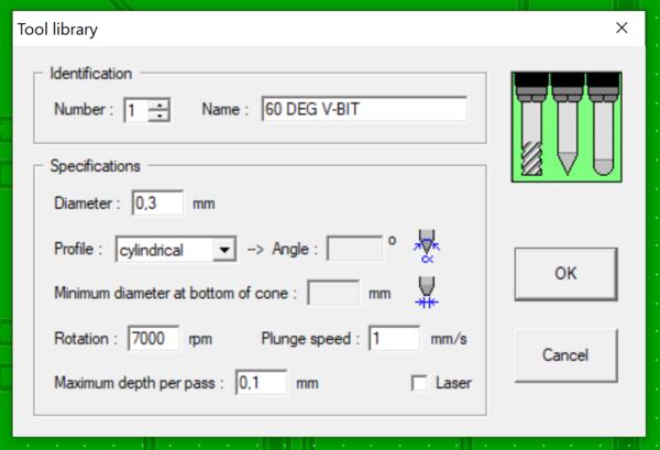 I also heard that the engravong depth should be shallower than in it is at the moment, so I go to Tool Library and for V-bit I set Maximum depth per pass to 0.07mm. To make it update, I quess I have to start from beginning, which is quick because I have done it at least 5 times already. Well it didn't, so I set the depth in Selected tools instead.