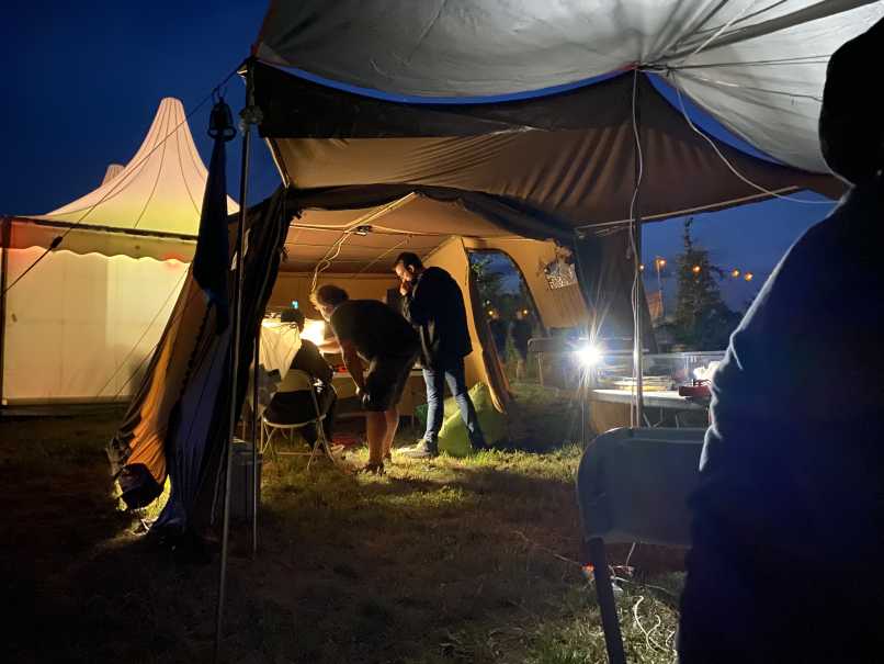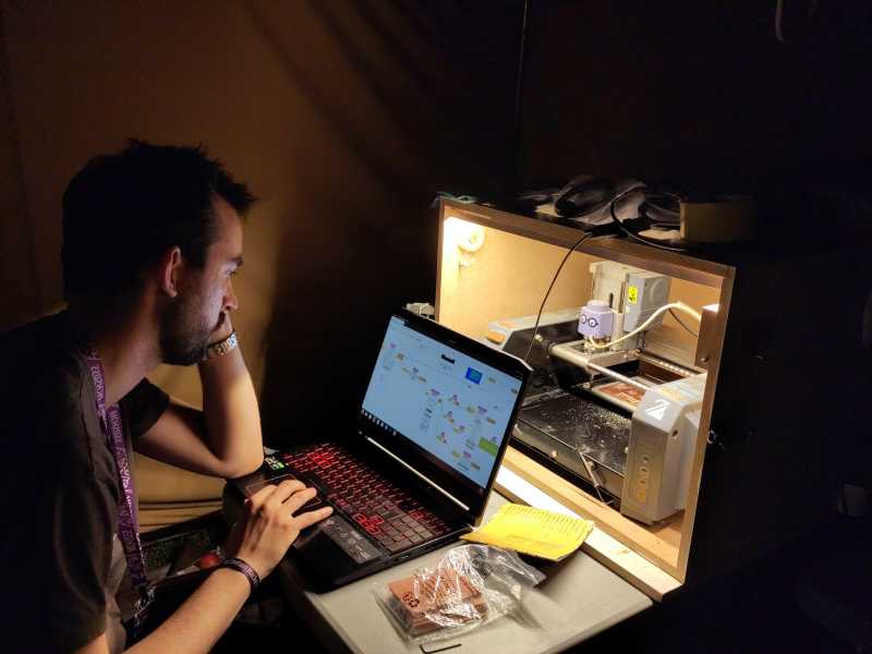 FabLab in a camping tent during the night.