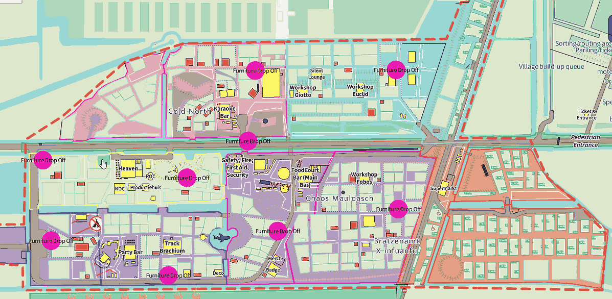 The map of WHY2025 camp, FabAcademy village is pointed by the mouse