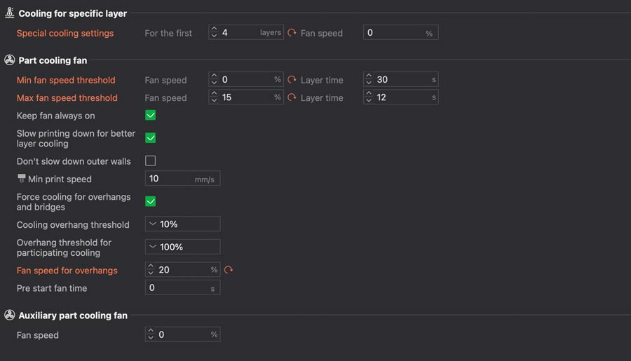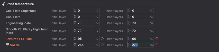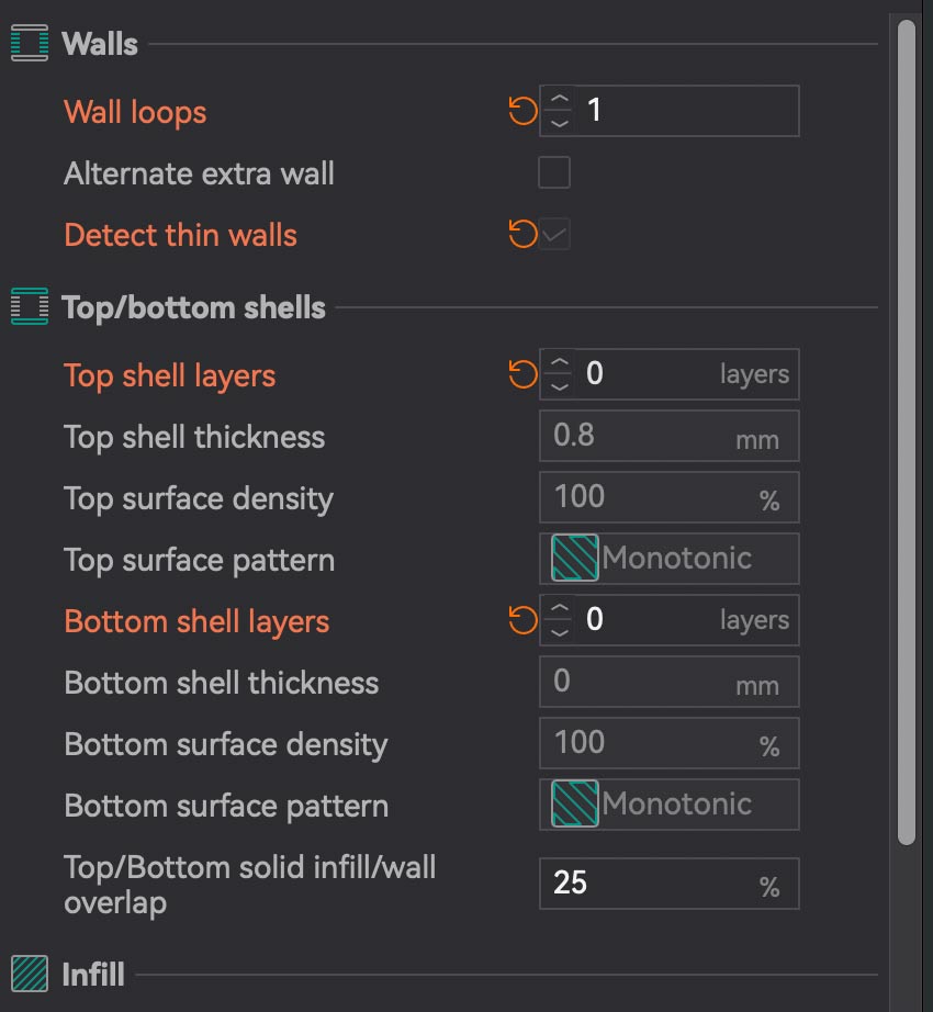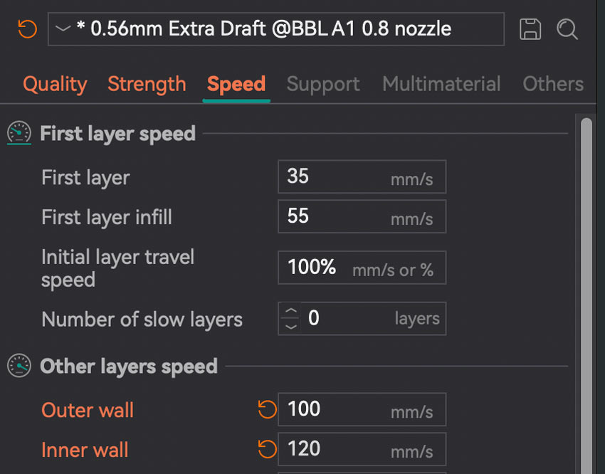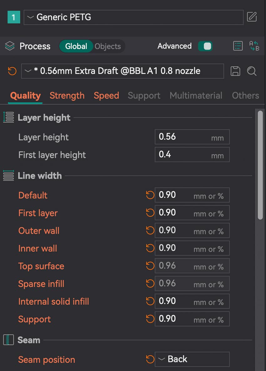 Print settings used for first test: