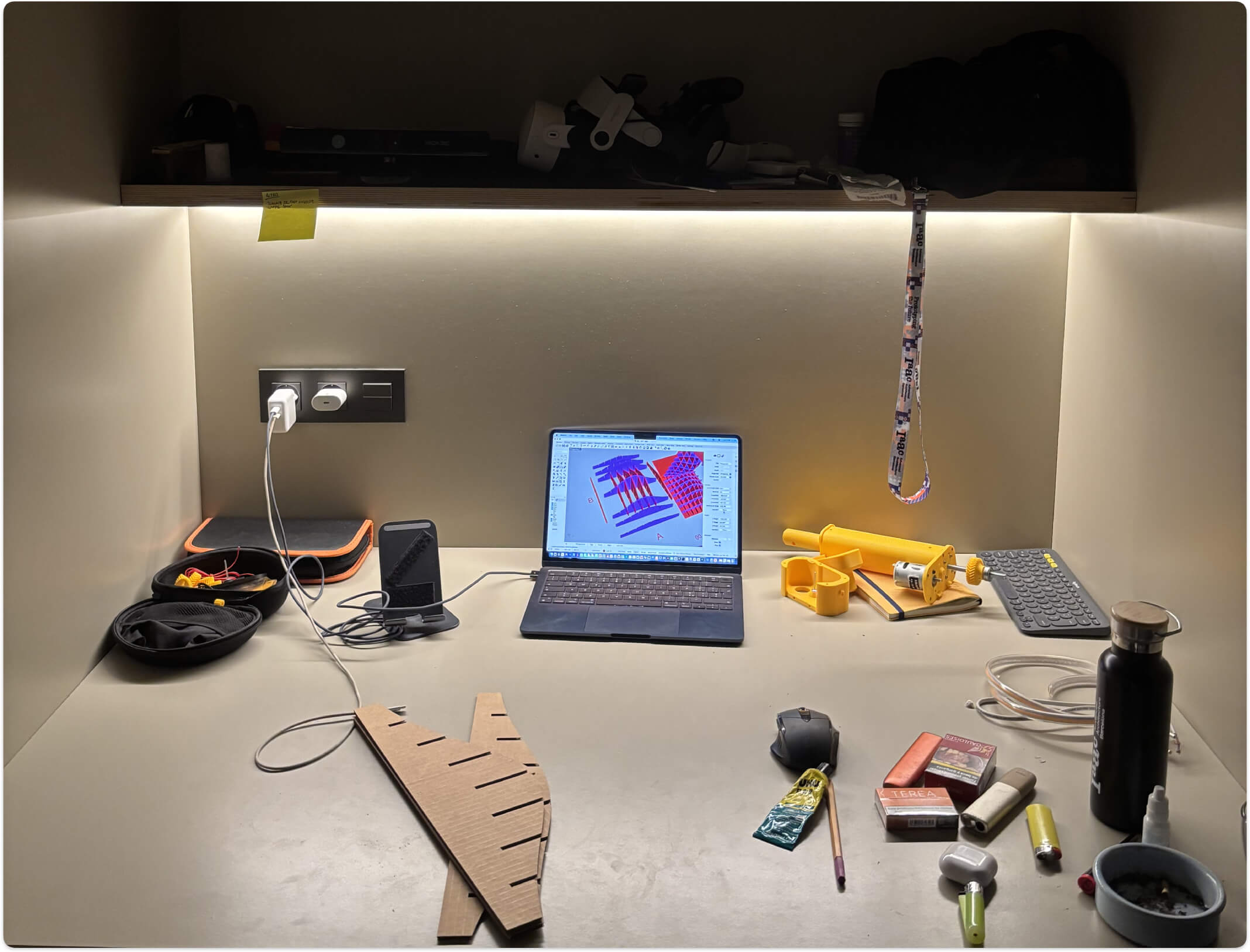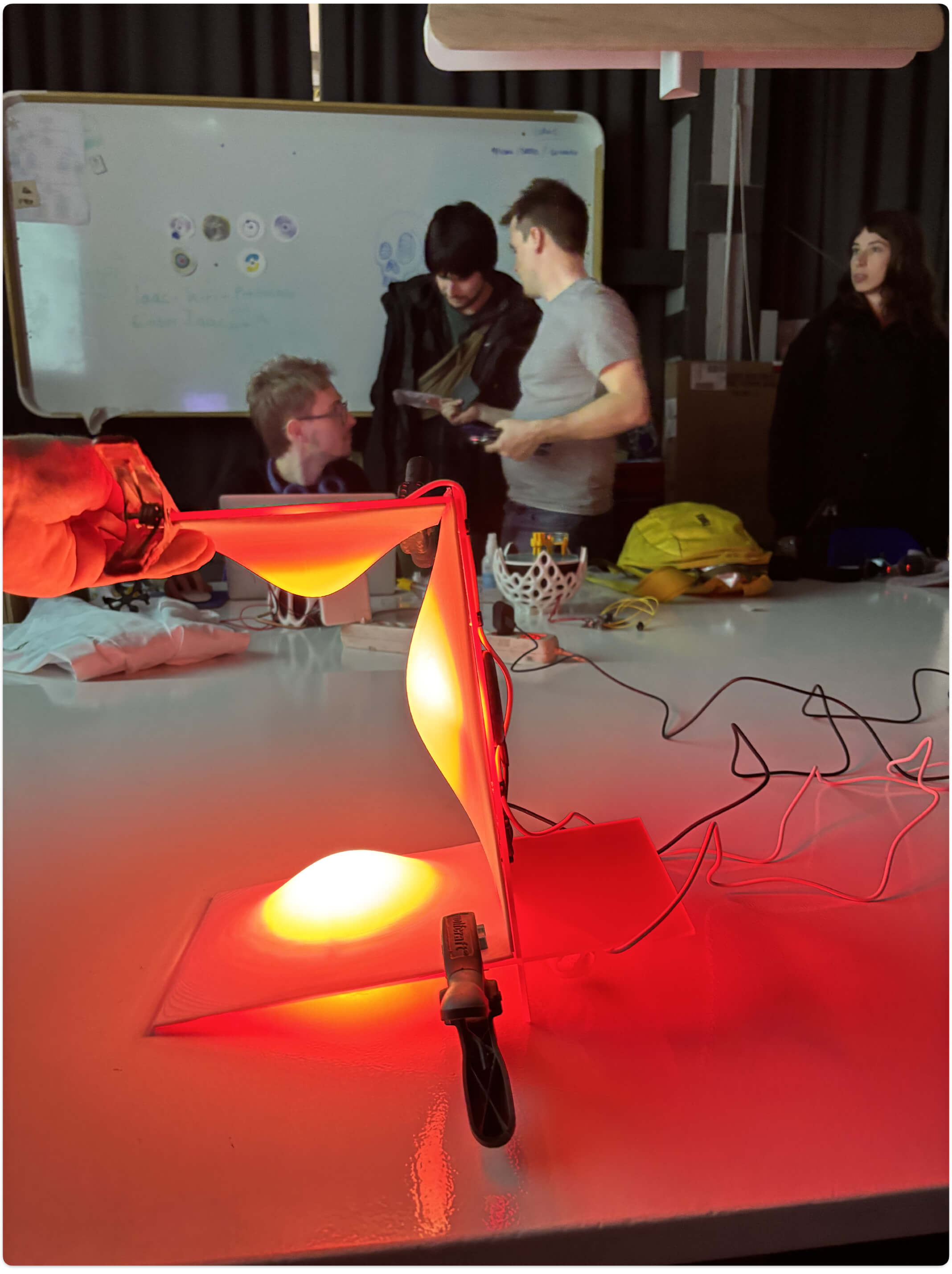 When I realized I needed a physical light source to proceed, it hit me just how incredible this environment is. It was a beautiful, almost overwhelming realization: in a single day, I could launch a file on the 3D printer, walk over to the laser cutter to slice a new material, and immediately test physical lighting effects right at my desk. Having an entire lab at my disposal to rapid-prototype across multiple machines simultaneously is something I had never experienced before. It completely shifted my mindset from linear design to parallel, hands-on iteration.