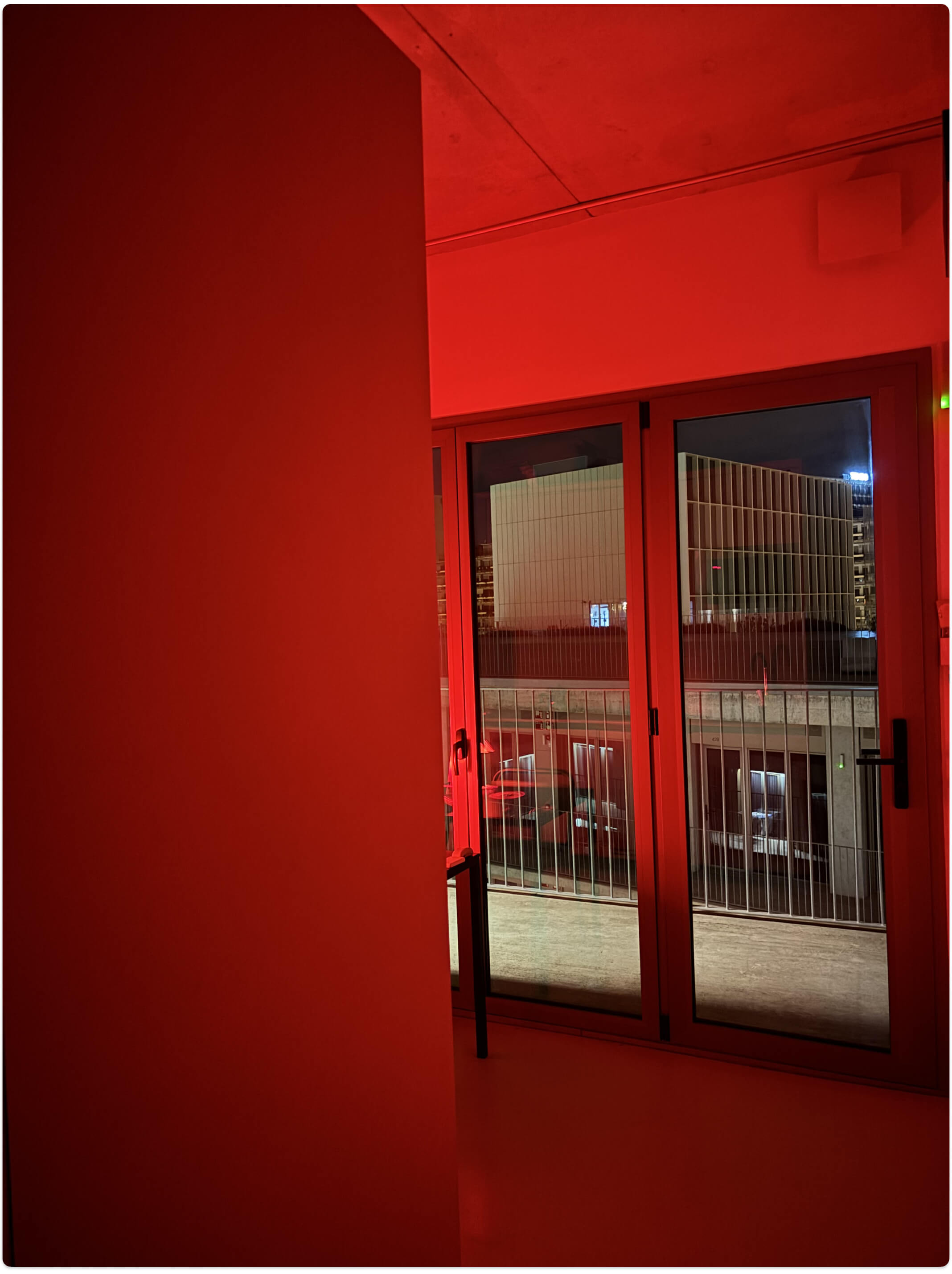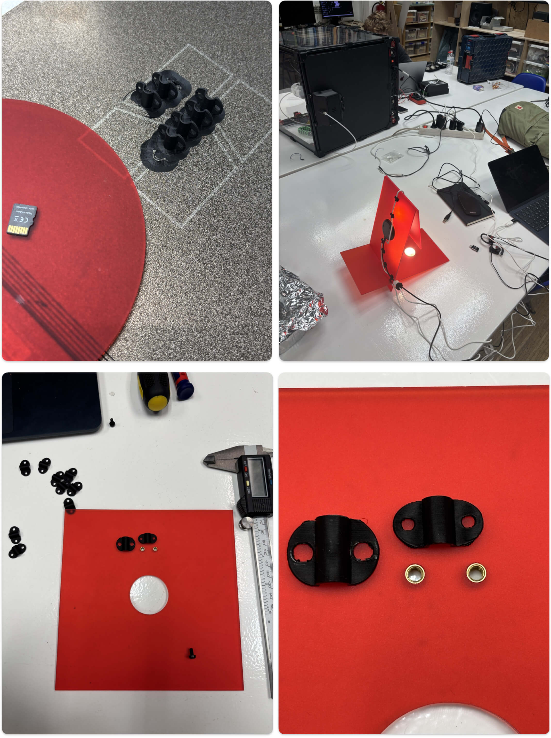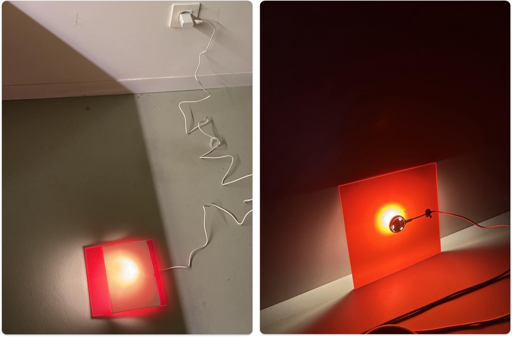 For the electronics, I want to merge the three separate USB cables into a single power line. I found an old bicycle inner tube in the lab, which will be perfect for a rugged, flexible cable management sleeve. I'll need to ask Dani to teach me how to safely solder the wires together without blowing anything up - especially since I plan to give this lamp to my friend Luigi, who kindly hosted me during my first week here in Barcelona! Seeing the intense red glow completely transform the vibe of the apartment at night confirms that despite the structural headaches, the aesthetic payoff is absolutely worth it.