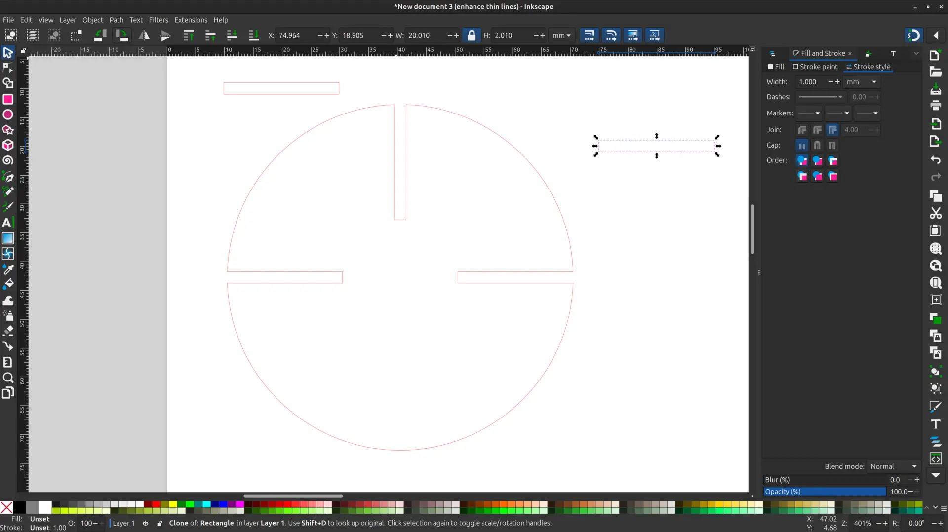 Apparently I missed the note that one should not use Inkscpape’s clone tool to the parametric design because “it is not a real parametric software.” 😬