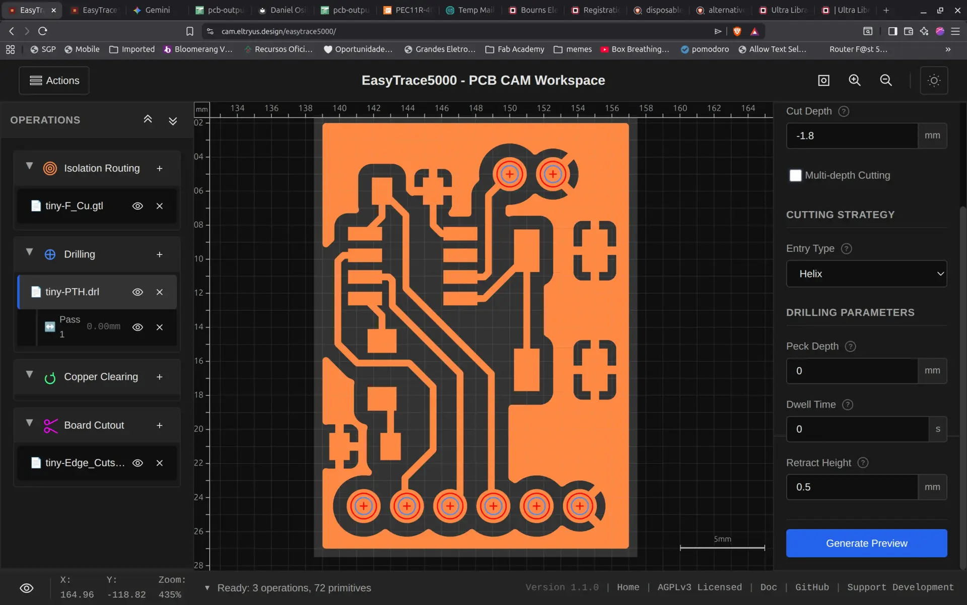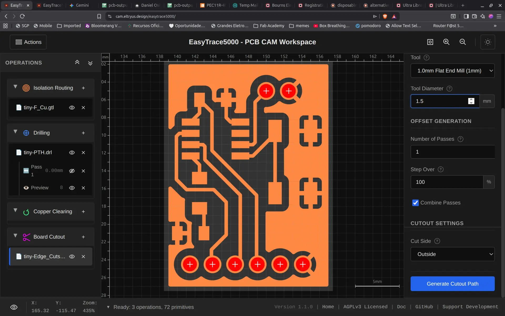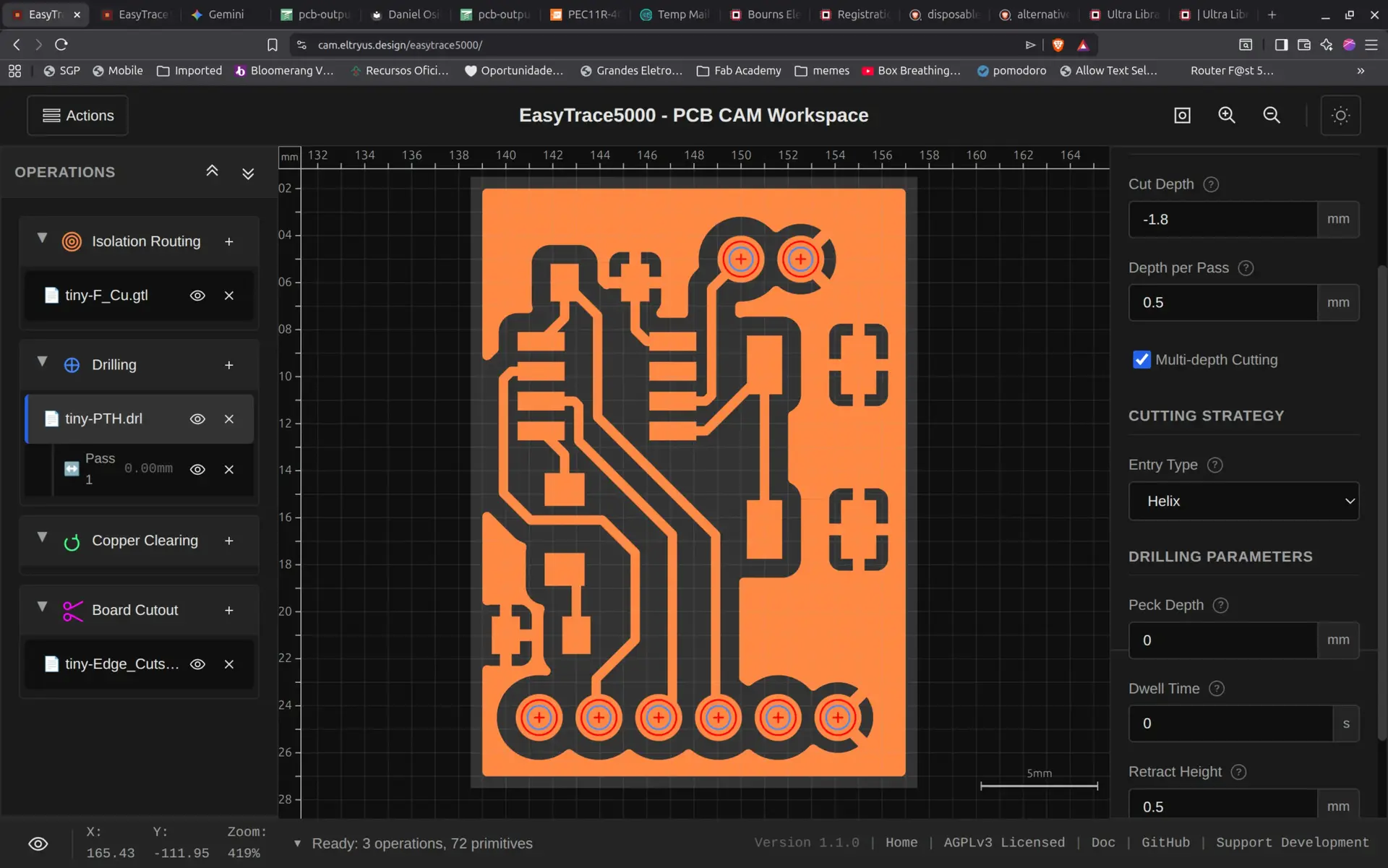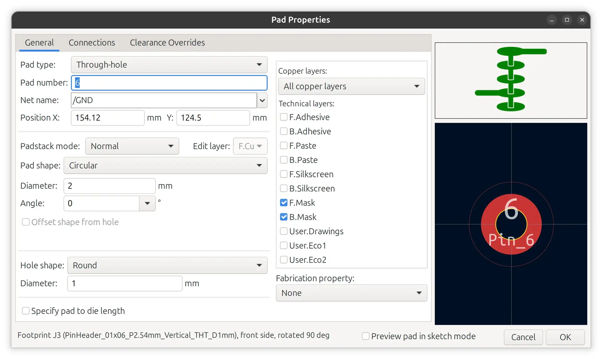 Because the drilling mill we’re using is 1.8 mm, the instructor suggested changing the pads to circular shape and a diameter of 2mm: