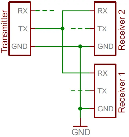 | Wiring | 2 wires (TX, RX) | 2 wires (SDA, SCL) | 4 wires (MOSI, MISO, SCK, SS) |