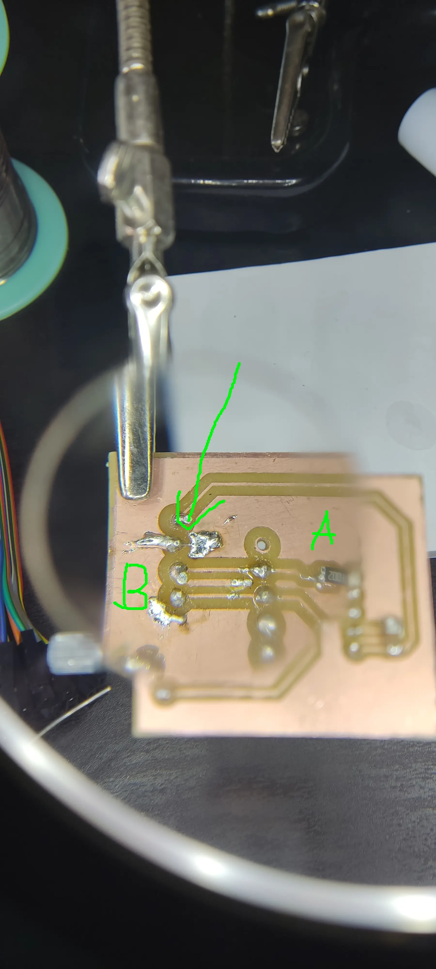 So I applied a bit of glue to prevent further wobbling, and applied the solder iron again on the connector wires. The misleading part was that when I was testing it with the multimeter once again, the pressure from the probes would make it make contact, leading me to think that everything was OK, but it wasn’t.