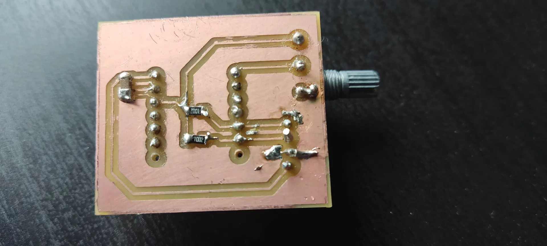 Since the board for input week didn’t yet have the pull up resistors, or connectors for the I2C, I soldered them, and here what it looks like: