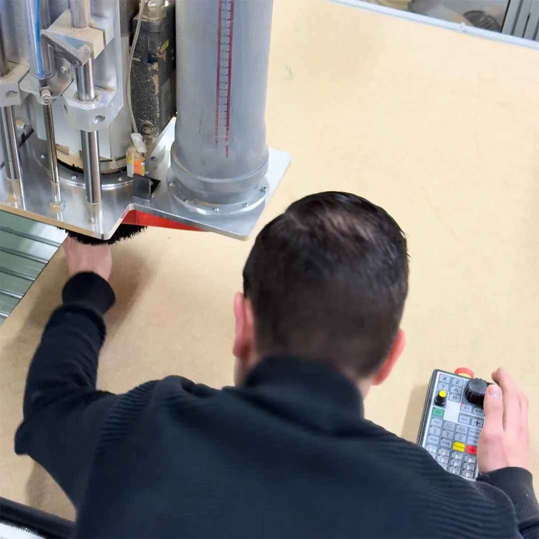To calibrate, the milling head was slightly lowered into the material, the current height was read, and it was set as the new Z-zero point in the integrated CNC software.