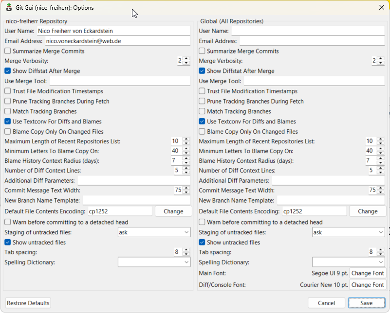 After setting up GitGUI options I can start the real work with my website.
