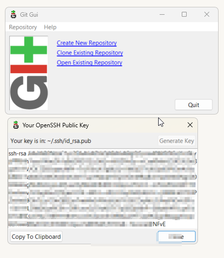 For authentication and signing I first had to generate an SSH Key and link it to GitGUI.