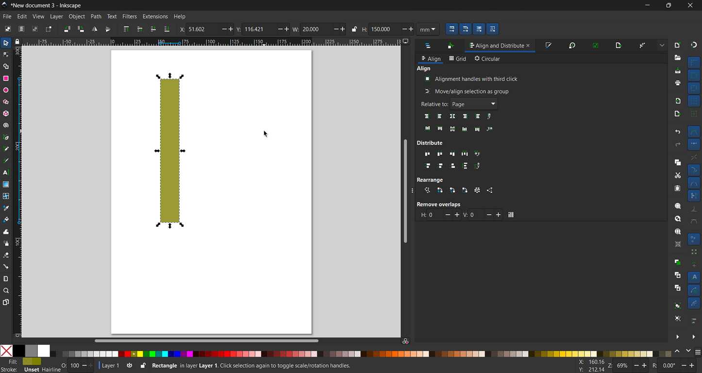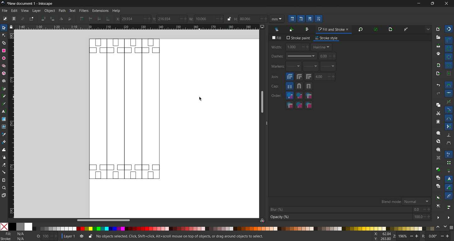 I designed a shape by using the parametric curve function of Inkscape. But first, I started with a rectacle.