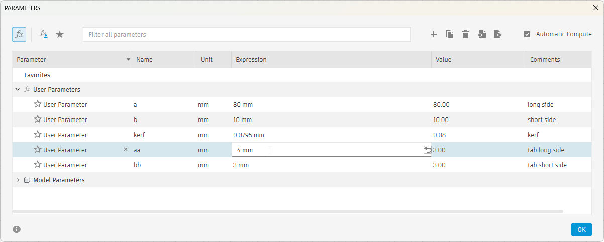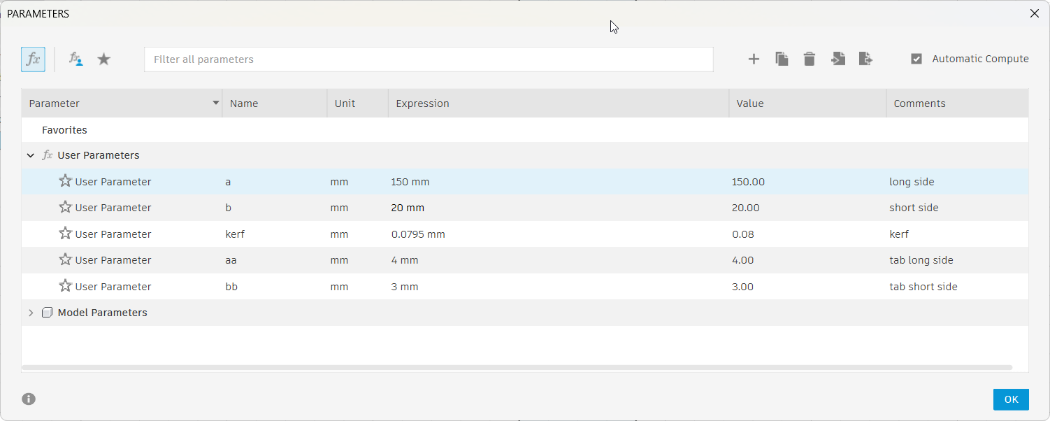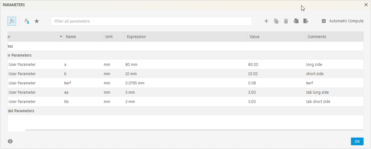 I have not linked the parameter-menu to a shortcut yet, but I thought it would be useful for this and following projects.