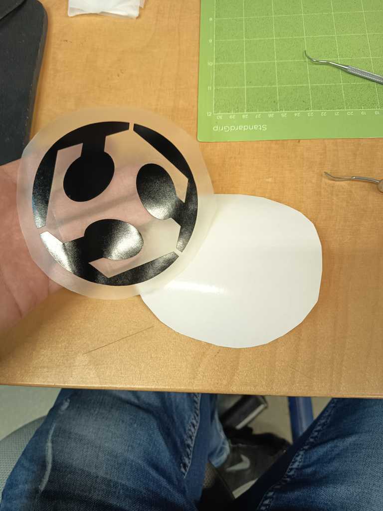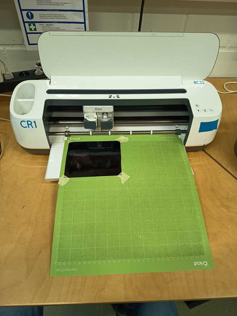 I placed a 10 cm rectangle of black vinyl on the base plate and fixed it with additional tape.