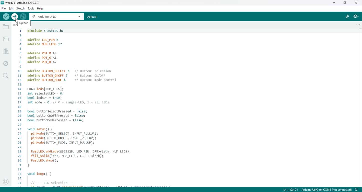 Then I was able to upload it to the Arduino.