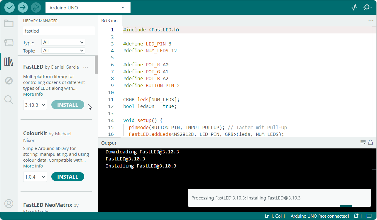 This weeks goal was to explore a microcontroller data sheet, develop and test an embedded program that interacts with input/output devices and communicates via wired or wireless connections. Therefore I used an Arduino Uno to control a WS2812 LED strip.