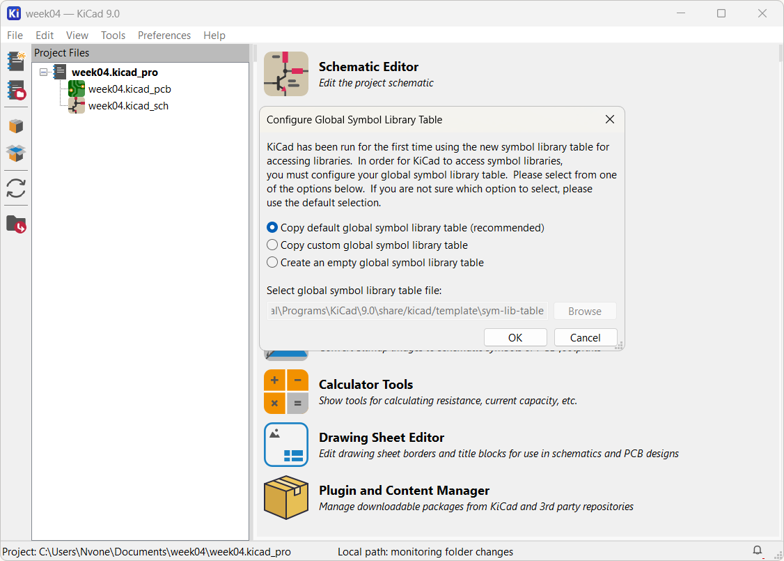 I downloaded the program KICAD and configured it.