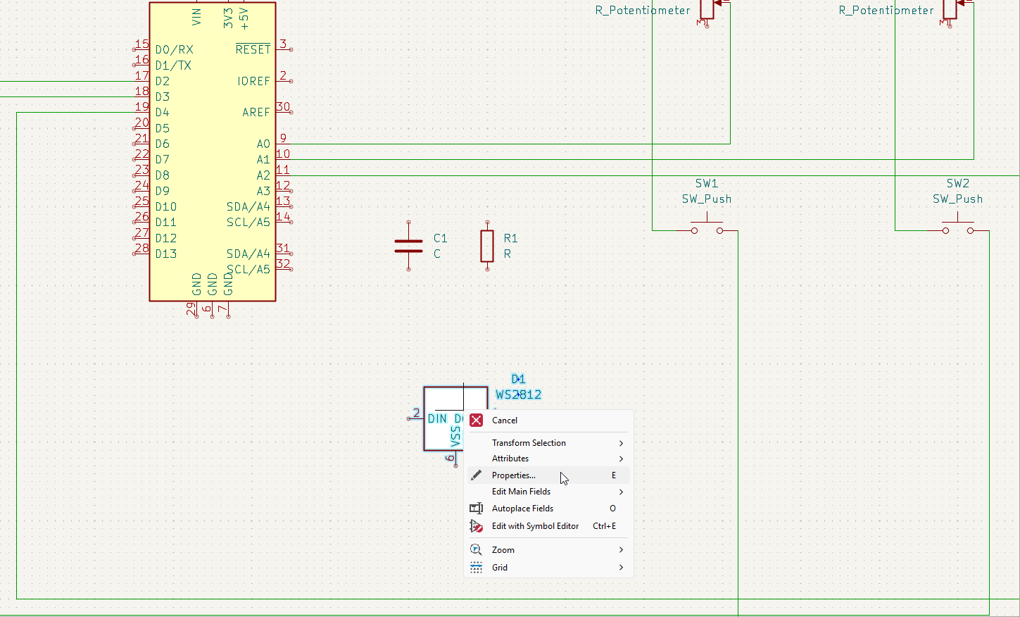 I had to edtit the WS2812. By right clicking a selection the popup menu shows up.