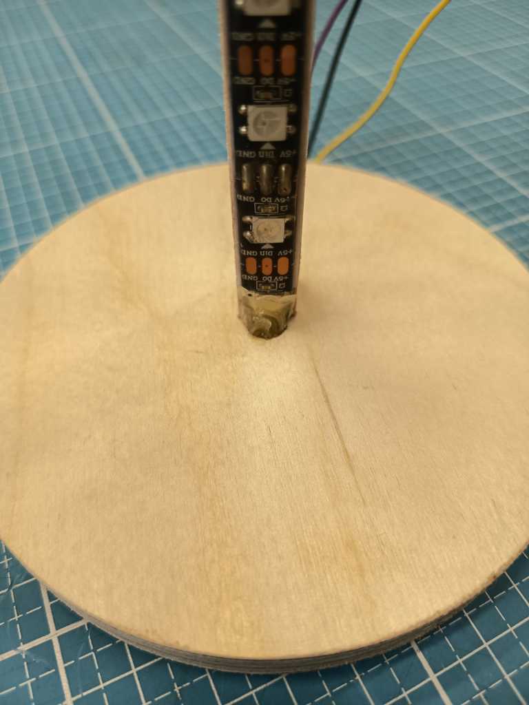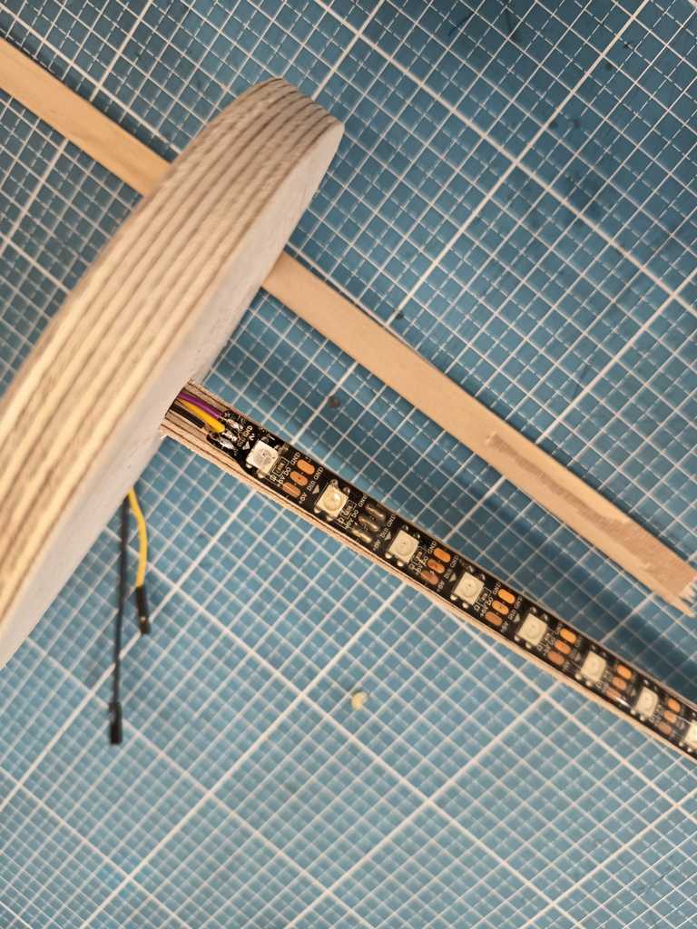 Then I attached the strip with a hot glue gun and routed the cables threw the notch.