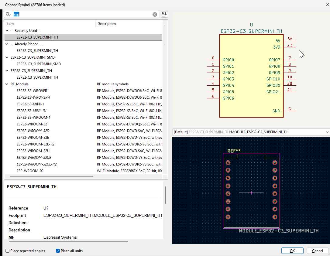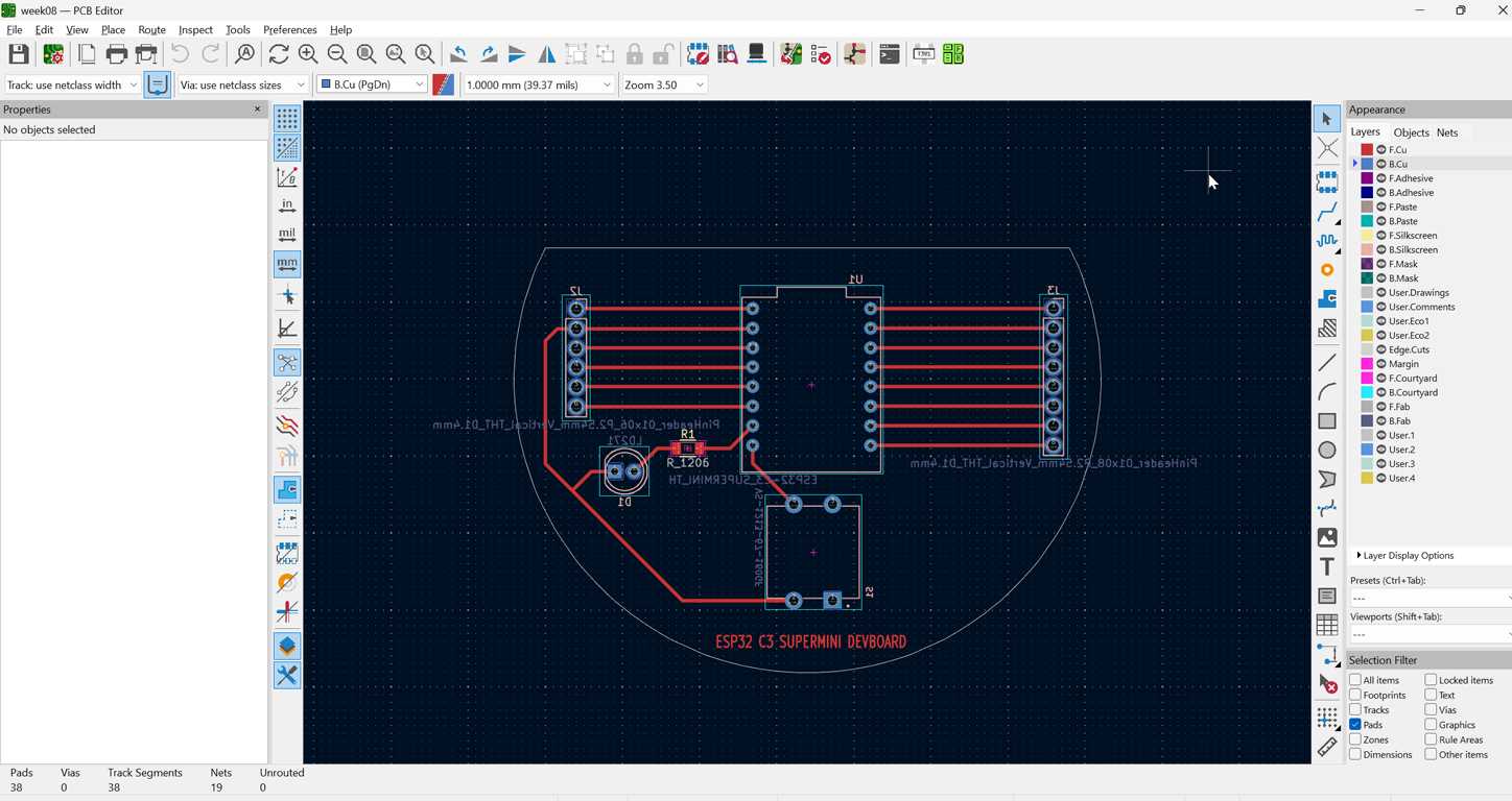 For this assignment, I designed a simple development board for the ESP32-C3 supermini to create a flexible platform for testing and further development of my final project.