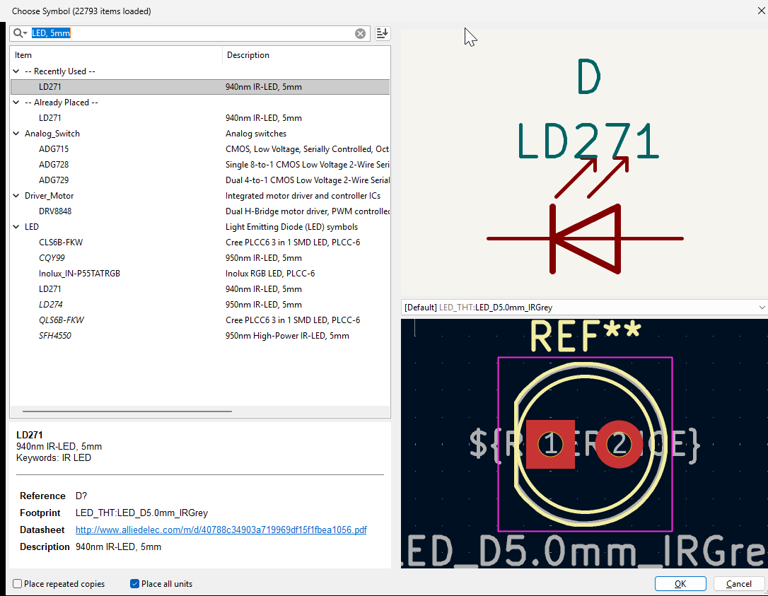 I started a new Kicad project, as in the previous weeks and added the components.