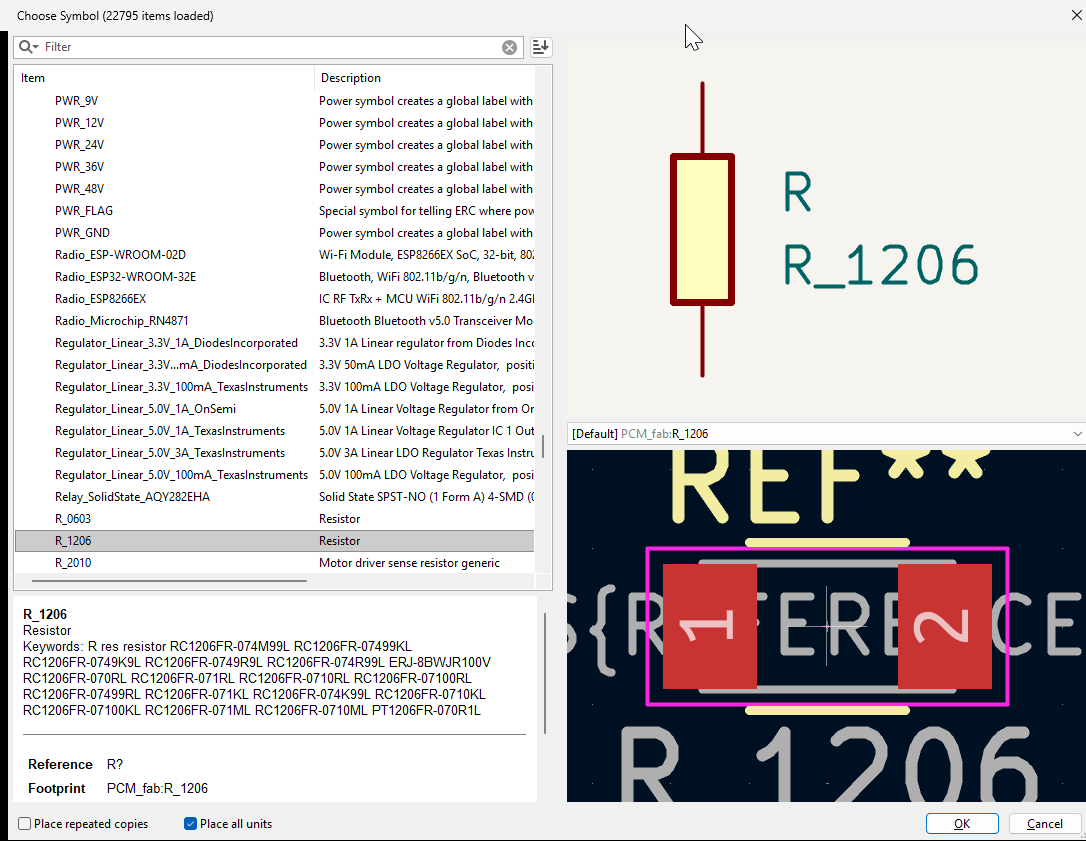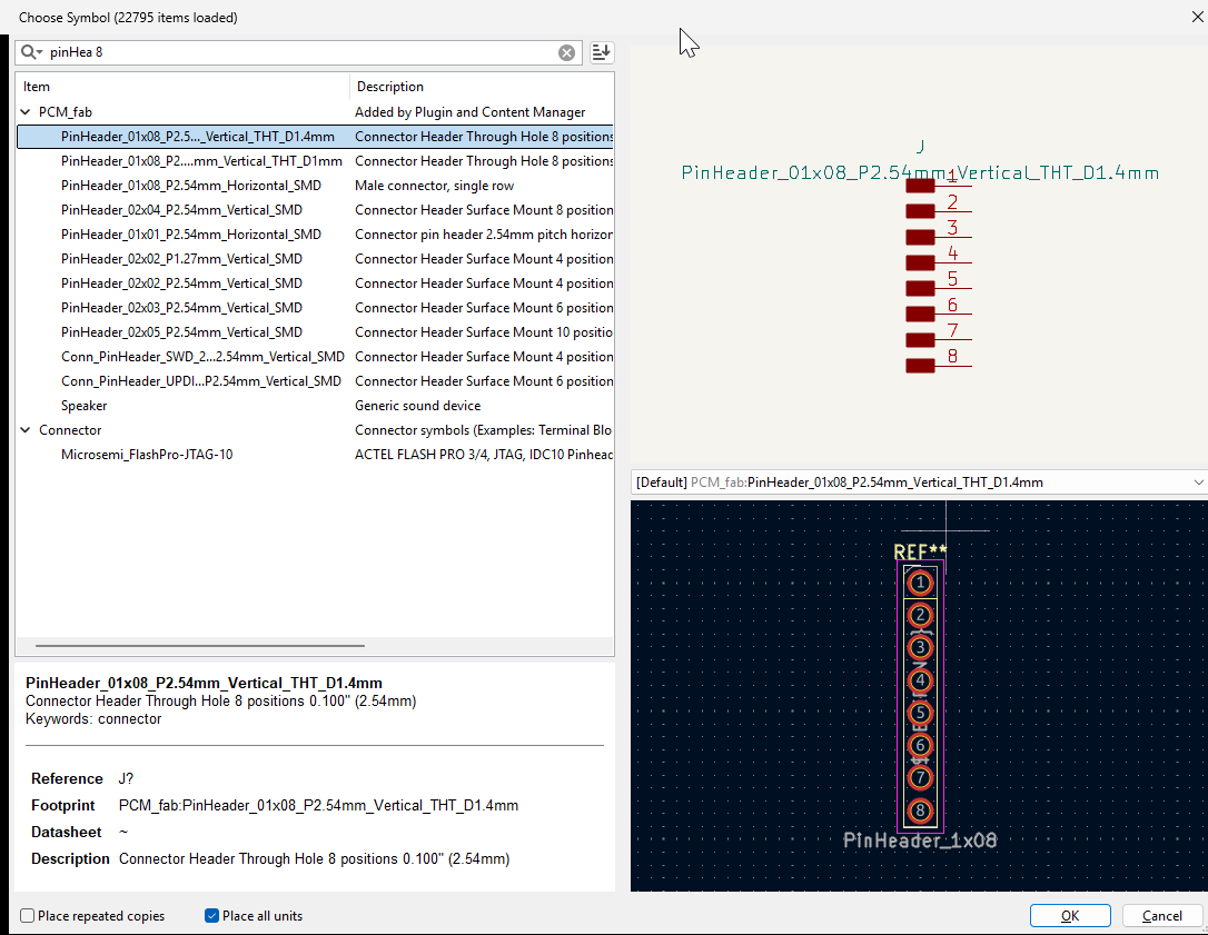 Then I connected all components in the schematic editor. After that, I updated the PCB editor and placed the components on the correct side of the board.