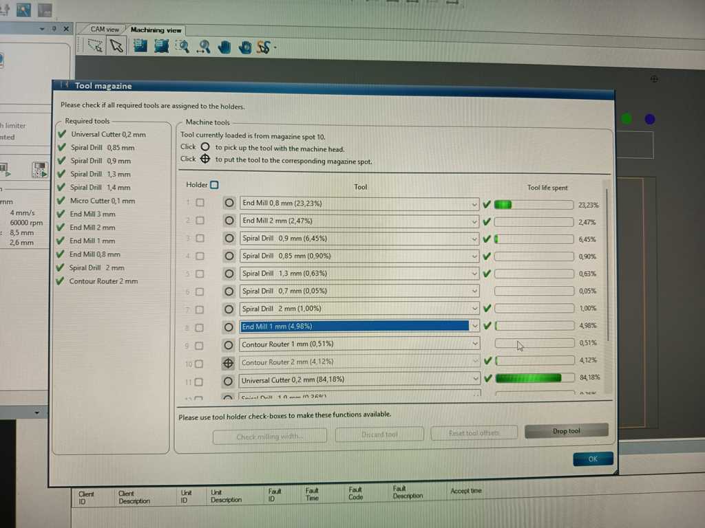 The PCB milling process is documented in detail on our group page. I followed the same workflow and started the milling job.
