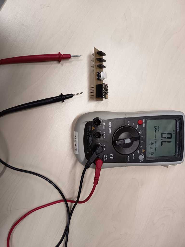 After assembly, I verified the board using a multimeter. Some minor rework was required, as one connection was not properly soldered.