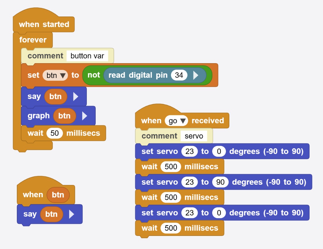 The following examples illustrate the bidirectional real-time capabilities of MicroBlocks: