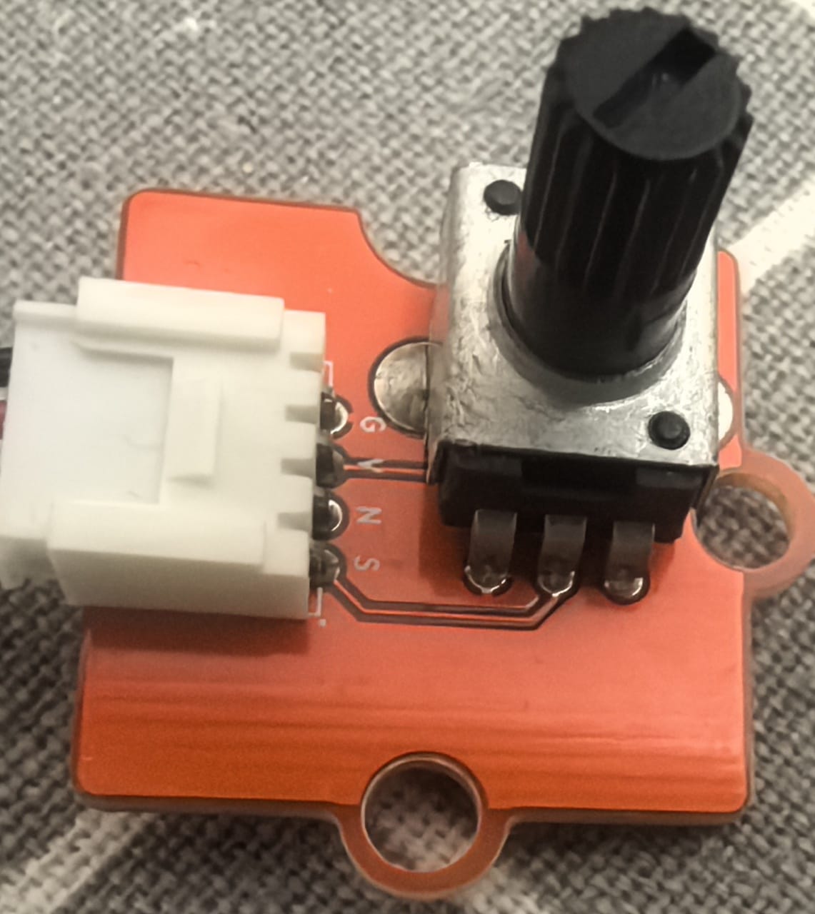 The Grove Rotary Potentiometer is a simple, analog input module that detects rotational position.