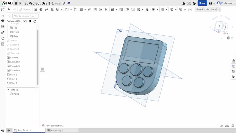 Once I completed the 2D design, I moved on to 3D modeling with OnShape and Blender.