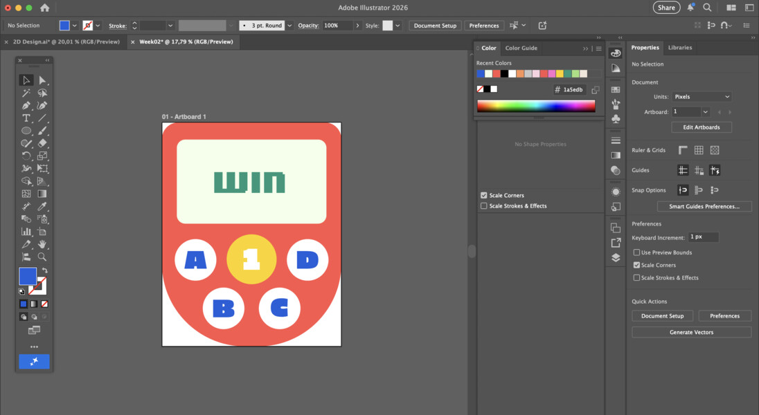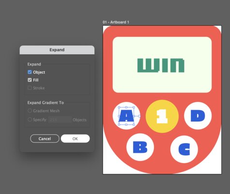 Next, I created the other buttons (A, B, C, D). Then, I expanded the text using the Expand tool (Object -> Expand).
