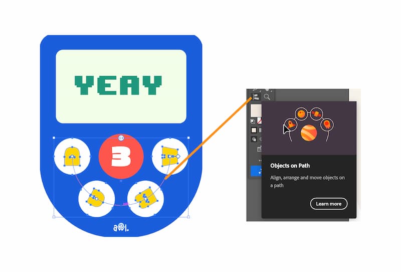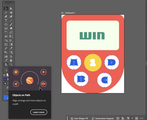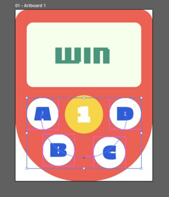 In addition, I also utilized “Objects on Path” feature on Adobe Illustrator to arrange the “ABCD” button on an arc: