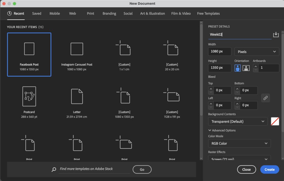 Open Adobe Illustrator and create a new file (File -> New). Adjust the ‘Preset Details’, then click ‘Create‘