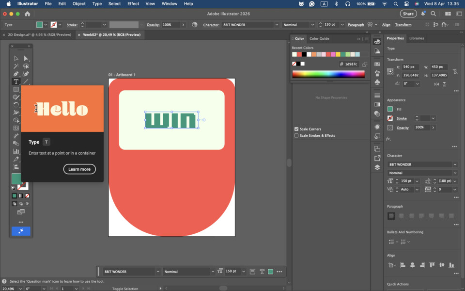 I created the text using the ‘Type Tool’, changed the color to #1d987c, and adjusted the character settings.
