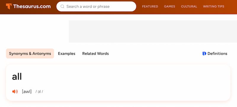For the product name, I wanted to include the word “all” - since the goal is for everyone (all) to play and have fun together. I researched several name ideas, such as “all&,” “&all,” “y’all,” “forall,” and “all.” Since I haven’t satisfied with the name, I looked for alternative words with a similar meaning to “all,” and I found this on Thesaurus.com: