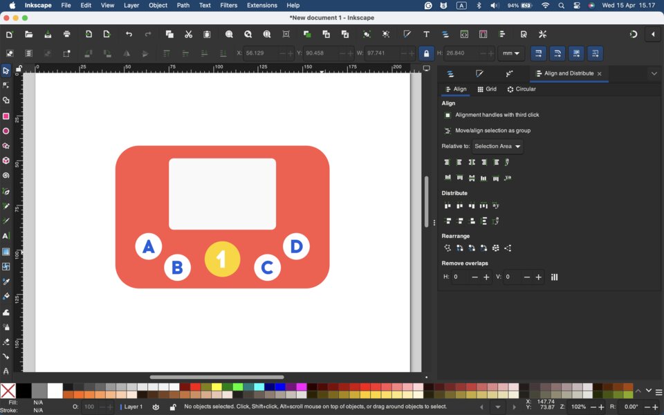 - I also created additional circles for the A/B/C/D buttons. The result is shown below: