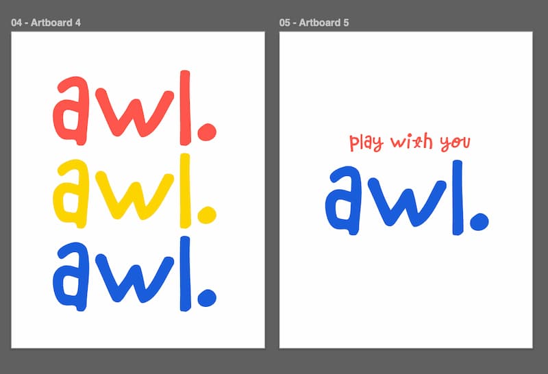 The word “all” is pronounced as “awl”. I loved the name so much, I went ahead and made the simple logo “awl.” and the tagline “play with you awl.” (Font name: Chinchilla):