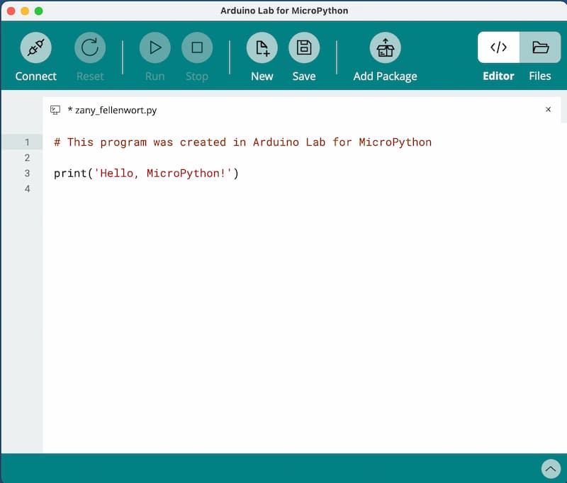 I chose Arduino Lab for MicroPython to write and edit the code. It is a lightweight editor for Micropython programming language. The project is sponsored by Arduino.