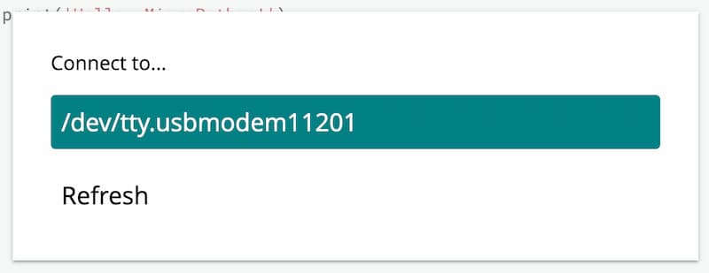 Choose the port: Tools -> Port -> /dev/cu.usbmodem11201