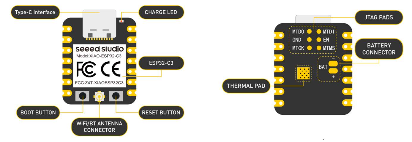 XIAO ESP32-C3 is a budget-friendly and high-performance RISC-V development board that supports WiFi and Bluetooth.